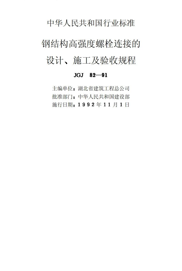 钢结构高强度螺栓连接的设计、施工及验收规程348072@abc前天发布关注私信1.21MB34页025钢结构高强度螺栓连接的设计、施工及验收规程此内容为付费资源,请付费后查看¥23¥36黄金会员免费钻石会员免费立即购买您当前未登录!建议登陆后购买,可保存购买订单付费资源 第1页 / 共34页 第2页 / 共34页 第3页 / 共34页 第4页 / 共34页 第5页 / 共34页 试读已结束,还剩29页,您可下载完整版后进行离线阅读 THE END标准规范 文本预览 中华人民共和国行业标准钢结构高强度螺栓连接的设计、施工及验收规程www.sinoaec.comJGJ82-91中国建筑资讯网1992北京 查看更多 收起部分 喜欢就支持一下吧收藏