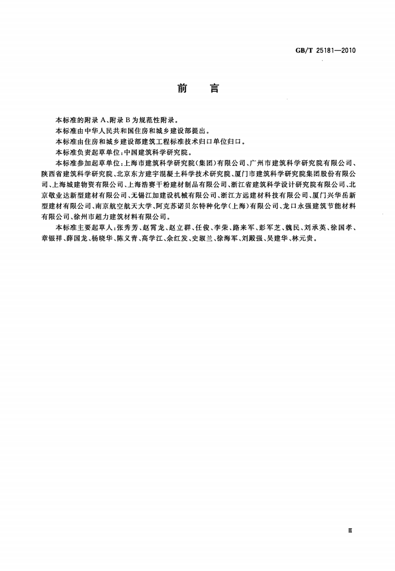 预拌砂浆Ready-mixedmortar348072@abc前天发布关注私信0.81MB21页050预拌砂浆Ready-mixedmortar此内容为付费资源,请付费后查看¥23¥36黄金会员免费钻石会员免费立即购买您当前未登录!建议登陆后购买,可保存购买订单付费资源 第1页 / 共21页 第2页 / 共21页 第3页 / 共21页 第4页 / 共21页 第5页 / 共21页 试读已结束,还剩16页,您可下载完整版后进行离线阅读 THE END标准规范 文本预览 ICs91.100.10P20中华人民共和国国家标准GB/T25181一2010预拌砂浆Ready-mixed mortar2010-09-26发布2011-08-01实施中华人民共和国国家质量监督检验检疫总局中国国家标准化管理委员会发布 查看更多 收起部分 喜欢就支持一下吧收藏