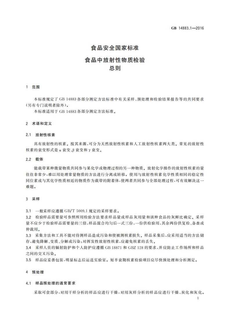 食品安全国家标准食品中放射性物质检验总则_食品安全国家标准食品中放射性物质检验总则348072@abc前天发布关注私信0.29MB7页031食品安全国家标准食品中放射性物质检验总则_食品安全国家标准食品中放射性物质检验总则此内容为付费资源,请付费后查看¥23¥36黄金会员免费钻石会员免费立即购买您当前未登录!建议登陆后购买,可保存购买订单付费资源 第1页 / 共7页 第2页 / 共7页 第3页 / 共7页 第4页 / 共7页 第5页 / 共7页 试读已结束,还剩2页,您可下载完整版后进行离线阅读 THE END标准规范 文本预览 GB中华人民共和国国家标准GB14883.1-2016食品安全国家标准食品中放射性物质检验总则2016-08-31发布2017-03-01实施中华人民共和国国家卫生和计划生育委员会发布 查看更多 收起部分 喜欢就支持一下吧收藏