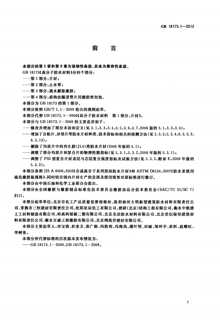 高分子防水材料第1部分_片材Polymerwater-proofmaterials-Part1_Water-proofsheet348072@abc前天发布关注私信0.96MB28页037高分子防水材料第1部分_片材Polymerwater-proofmaterials-Part1_Water-proofsheet此内容为付费资源,请付费后查看¥23¥36黄金会员免费钻石会员免费立即购买您当前未登录!建议登陆后购买,可保存购买订单付费资源 第1页 / 共28页 第2页 / 共28页 第3页 / 共28页 第4页 / 共28页 第5页 / 共28页 试读已结束,还剩23页,您可下载完整版后进行离线阅读 THE END标准规范 文本预览 ICs83.140.99G47中华人民共和国国家标准GB18173.1一2012代替GB18173.1一2006高分子防水材料第1部分:片材Polymer water-proof materials-Part 1:Water-proof sheet2012-09-03发布2013-06-01实施中华人民共和国国家质量监督检验检疫总局中国国家标准化管理委员会发布 查看更多 收起部分 喜欢就支持一下吧收藏