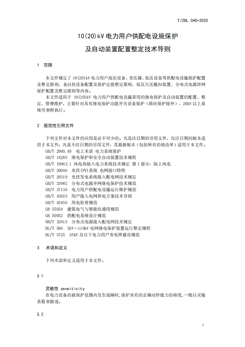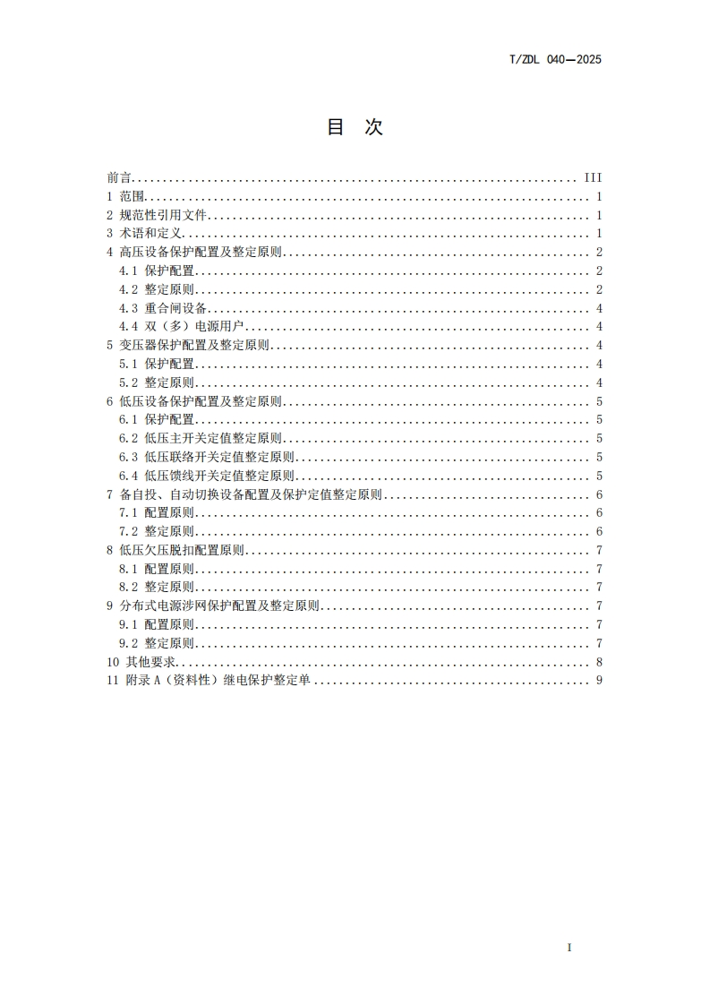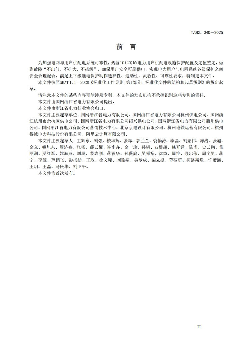 1C829.240.99CCS D 4420T/ZDL浙江省电力行业协会团体标准T/ZDL040-202510(20)kV电力用户供配电设施保护及自动装置配置整定技术导则Guidelines for the configuration and adjustmentof protection and automatic devices for electrical equipmenton the user side of 10~20kV and below2025-12-03发布2025-12-20实施浙江省电力行业协会发布