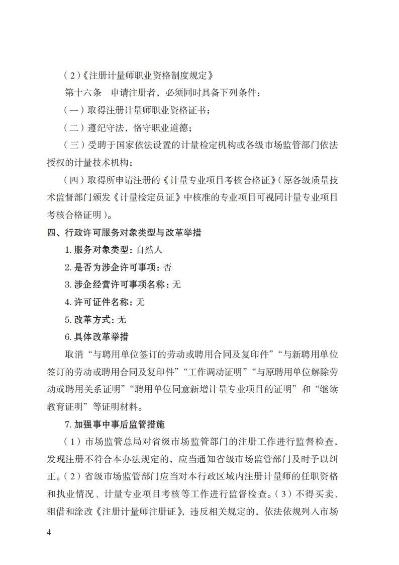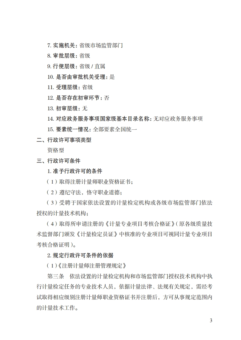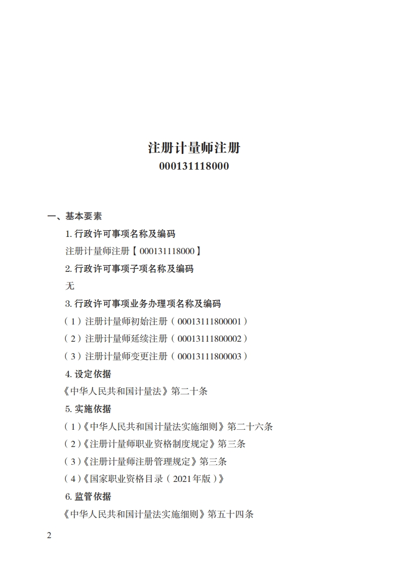 18注册计量师注册实施规范348072@abc10小时前发布关注私信0.24MB11页02218注册计量师注册实施规范此内容为付费资源,请付费后查看¥32¥39黄金会员免费钻石会员免费立即购买您当前未登录!建议登陆后购买,可保存购买订单付费资源 第1页 / 共11页 第2页 / 共11页 第3页 / 共11页 第4页 / 共11页 第5页 / 共11页 试读已结束,还剩6页,您可下载完整版后进行离线阅读 THE END标准规范 文本预览 18注册计量师注册实施规范(基本要素)一、行政许可事项名称:注册计量师注册二、中央主管部门:市场监管总局三、实施机关:省级市场监管部门四、设定和实施依据:《中华人民共和国计量法》《中华人民共和国计量法实施细则》《国家职业资格目录》五、子项:无 查看更多 收起部分 喜欢就支持一下吧收藏
