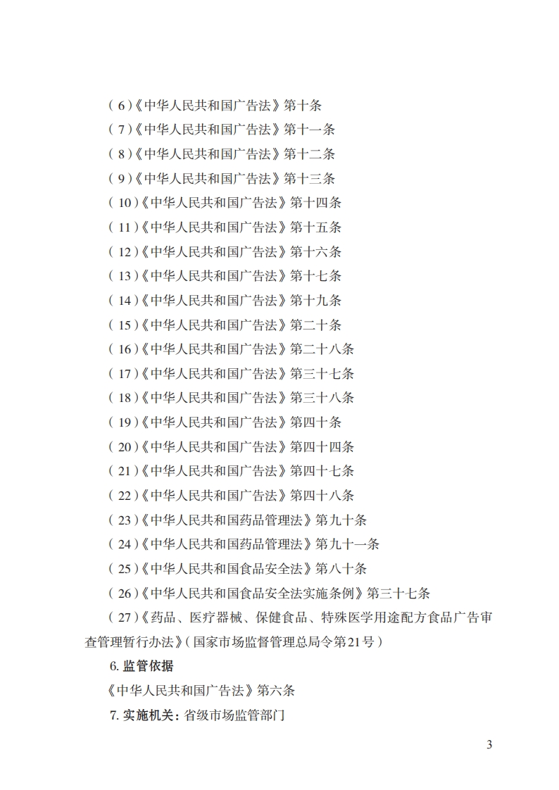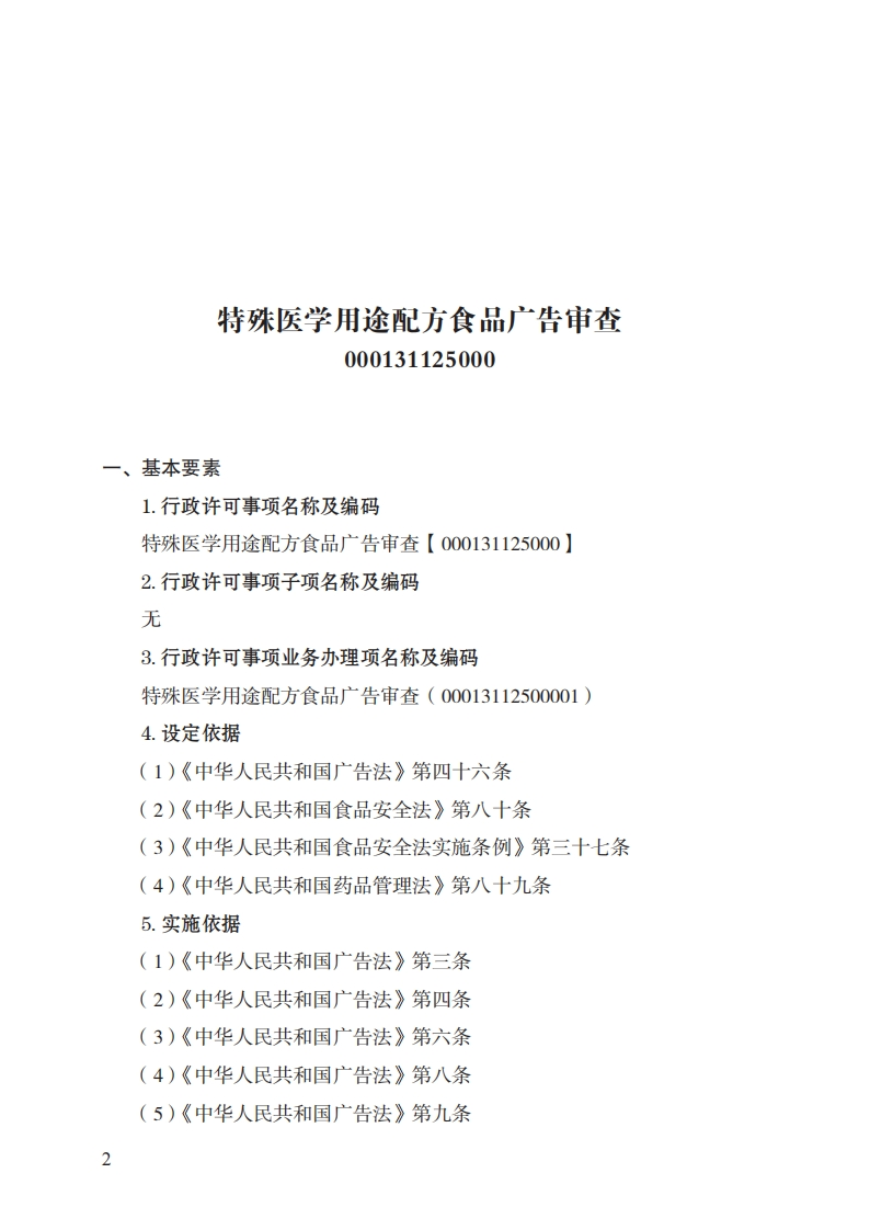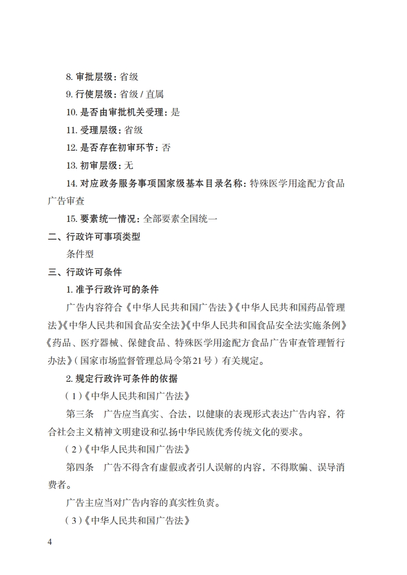 25特殊医学用途配方食品广告审查实施规范348072@abc8小时前发布关注私信0.31MB17页02725特殊医学用途配方食品广告审查实施规范此内容为付费资源,请付费后查看¥32¥39黄金会员免费钻石会员免费立即购买您当前未登录!建议登陆后购买,可保存购买订单付费资源 第1页 / 共17页 第2页 / 共17页 第3页 / 共17页 第4页 / 共17页 第5页 / 共17页 试读已结束,还剩12页,您可下载完整版后进行离线阅读 THE END标准规范 文本预览 25特殊医学用途配方食品广告审查实施规范(基本要素)一、行政许可事项名称:特殊医学用途配方食品广告审查二、中央主管部门:市场监管总局三、实施机关:省级市场监管部门四、设定和实施依据:《中华人民共和国广告法》《中华人民共和国药品管理法》《中华人民共和国食品安全法》《中华人民共和国食品安全法实施条例》《药品、医疗器械、保健食品、特殊医学用途配方食品广告审查管理暂行办法》(国家市场监督管理总局令第21号)五、子项:无1 查看更多 收起部分 喜欢就支持一下吧收藏