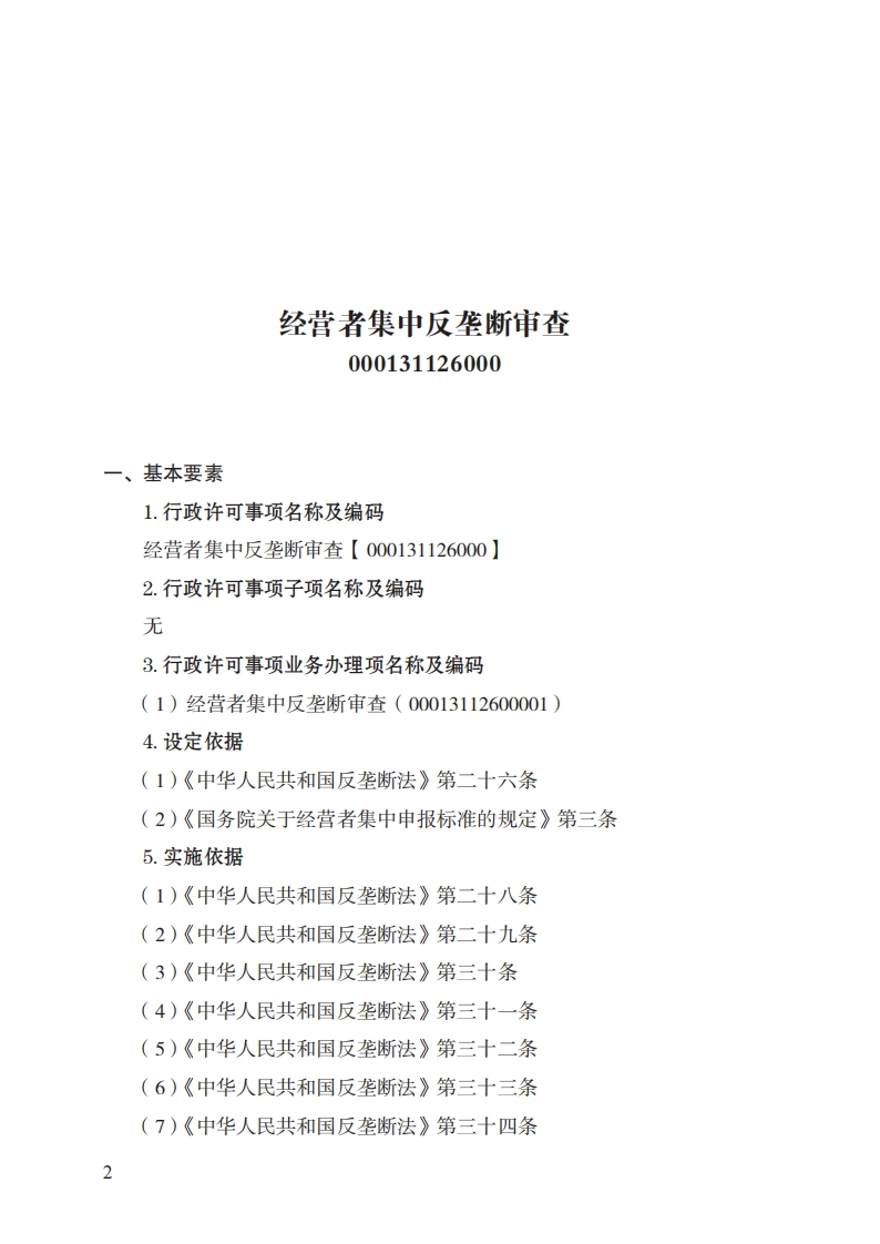 26经营者集中反垄断审查实施规范348072@abc8小时前发布关注私信0.26MB13页03826经营者集中反垄断审查实施规范此内容为付费资源,请付费后查看¥32¥39黄金会员免费钻石会员免费立即购买您当前未登录!建议登陆后购买,可保存购买订单付费资源 第1页 / 共13页 第2页 / 共13页 第3页 / 共13页 第4页 / 共13页 第5页 / 共13页 试读已结束,还剩8页,您可下载完整版后进行离线阅读 THE END标准规范 文本预览 26经营者集中反垄断审查实施规范(基本要素)一、行政许可事项名称:经营者集中反垄断审查二、中央主管部门:市场监管总局三、实施机关:市场监管总局四、设定和实施依据:《中华人民共和国反垄断法》五、子项无 查看更多 收起部分 喜欢就支持一下吧收藏
