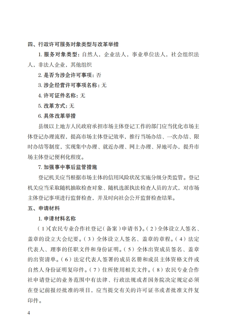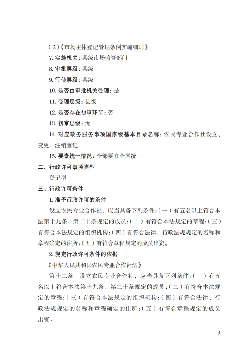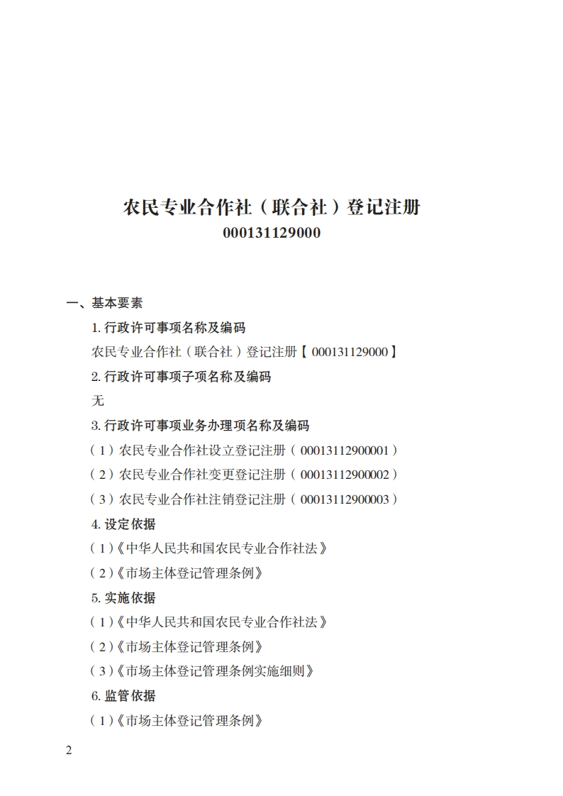 29农民专业合作社登记注册实施规范348072@abc8小时前发布关注私信0.24MB10页03629农民专业合作社登记注册实施规范此内容为付费资源,请付费后查看¥32¥39黄金会员免费钻石会员免费立即购买您当前未登录!建议登陆后购买,可保存购买订单付费资源 第1页 / 共10页 第2页 / 共10页 第3页 / 共10页 第4页 / 共10页 第5页 / 共10页 试读已结束,还剩5页,您可下载完整版后进行离线阅读 THE END标准规范 文本预览 29农民专业合作社(联合社)登记注册实施规范一、行政许可事项名称:农民专业合作社(联合社)登记注册二、中央主管部门:市场监管总局三、实施机关:县级市场监管部门四、设定和实施依据:《市场主体登记管理条例》《市场主体登记管理条例实施细则》《中华人民共和国农民专业合作社法》五、子项:无 查看更多 收起部分 喜欢就支持一下吧收藏