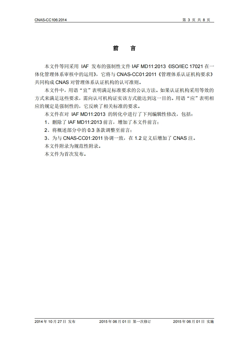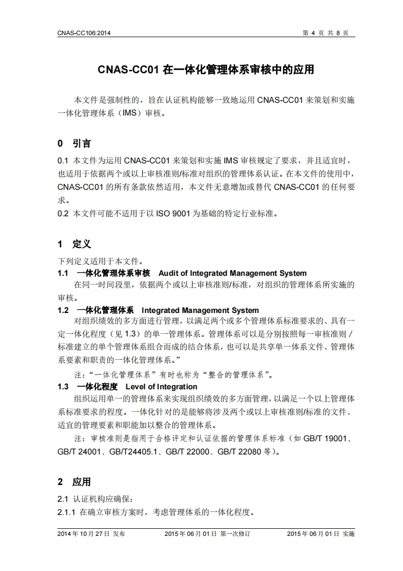 CNAS-CNAS-CC106-CNAS-CC01在一体化管理体系审核中的应用-The-application-of-lSO_EC-17021-for-audits-of-integrated348072@abc6小时前发布关注私信0.26MB8页037CNAS-CNAS-CC106-CNAS-CC01在一体化管理体系审核中的应用-The-application-of-lSO_EC-17021-for-audits-of-integrated此内容为付费资源,请付费后查看¥19¥39黄金会员免费钻石会员免费立即购买您当前未登录!建议登陆后购买,可保存购买订单付费资源 第1页 / 共8页 第2页 / 共8页 第3页 / 共8页 第4页 / 共8页 第5页 / 共8页 试读已结束,还剩3页,您可下载完整版后进行离线阅读 THE END标准规范 文本预览 CNASCNAS-CC106CNAS-CC01在一体化管理体系审核中的应用The application of ISO/IEC 17021 for audits of integratedmanagement system中国合格评定国家认可委员会2014年10月27日发布2015年06月01日第一次修订2015年06月01日实施 查看更多 收起部分 喜欢就支持一下吧收藏