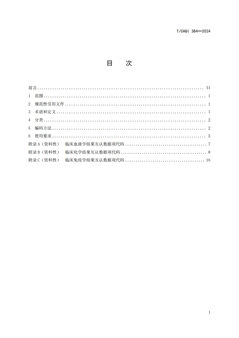 T-CAQI-384-2024《医学实验室-数据项代码》348072@abc昨天发布关注私信0.39MB22页047T-CAQI-384-2024《医学实验室-数据项代码》此内容为付费资源,请付费后查看¥19¥39黄金会员免费钻石会员免费立即购买您当前未登录!建议登陆后购买,可保存购买订单付费资源 第1页 / 共22页 第2页 / 共22页 第3页 / 共22页 第4页 / 共22页 第5页 / 共22页 试读已结束,还剩17页,您可下载完整版后进行离线阅读 THE END标准规范 文本预览 ICS11.100CCS C05T团体标T/CAQ|384-2024医学实验室数据项代码Medical laboratory-Codes for data items2024-04-07发布2024-05-06实施中国质量检验协会发布 查看更多 收起部分 喜欢就支持一下吧收藏