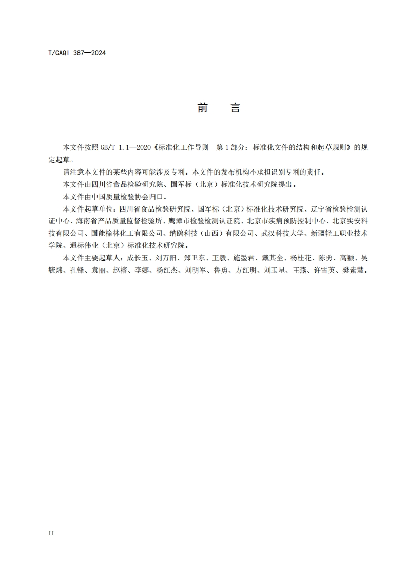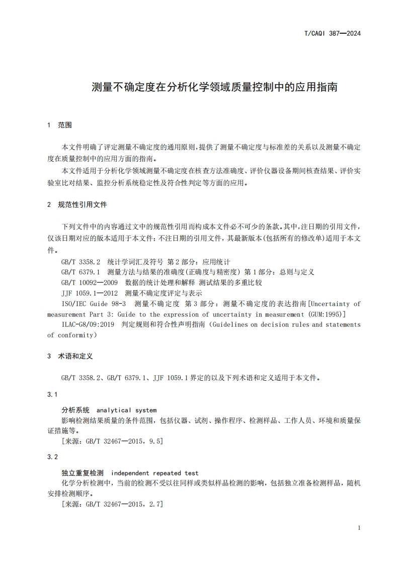 T-CAQI-387-2024《测量不确定度在分析化学领域质量控制中的应用指南》348072@abc昨天发布关注私信1.39MB19页023T-CAQI-387-2024《测量不确定度在分析化学领域质量控制中的应用指南》此内容为付费资源,请付费后查看¥19¥39黄金会员免费钻石会员免费立即购买您当前未登录!建议登陆后购买,可保存购买订单付费资源 第1页 / 共19页 第2页 / 共19页 第3页 / 共19页 第4页 / 共19页 第5页 / 共19页 试读已结束,还剩14页,您可下载完整版后进行离线阅读 THE END标准规范 文本预览 1CS71.040CCS A 43团体;标淮T/CAQI387-2024测量不确定度在分析化学领域质量控制中的应用指南Guidelines for application of measurement uncertainty in analyticalchemi stry quality control2024-04-30发布2024-05-29实施中国质量检验协会发布 查看更多 收起部分 喜欢就支持一下吧收藏