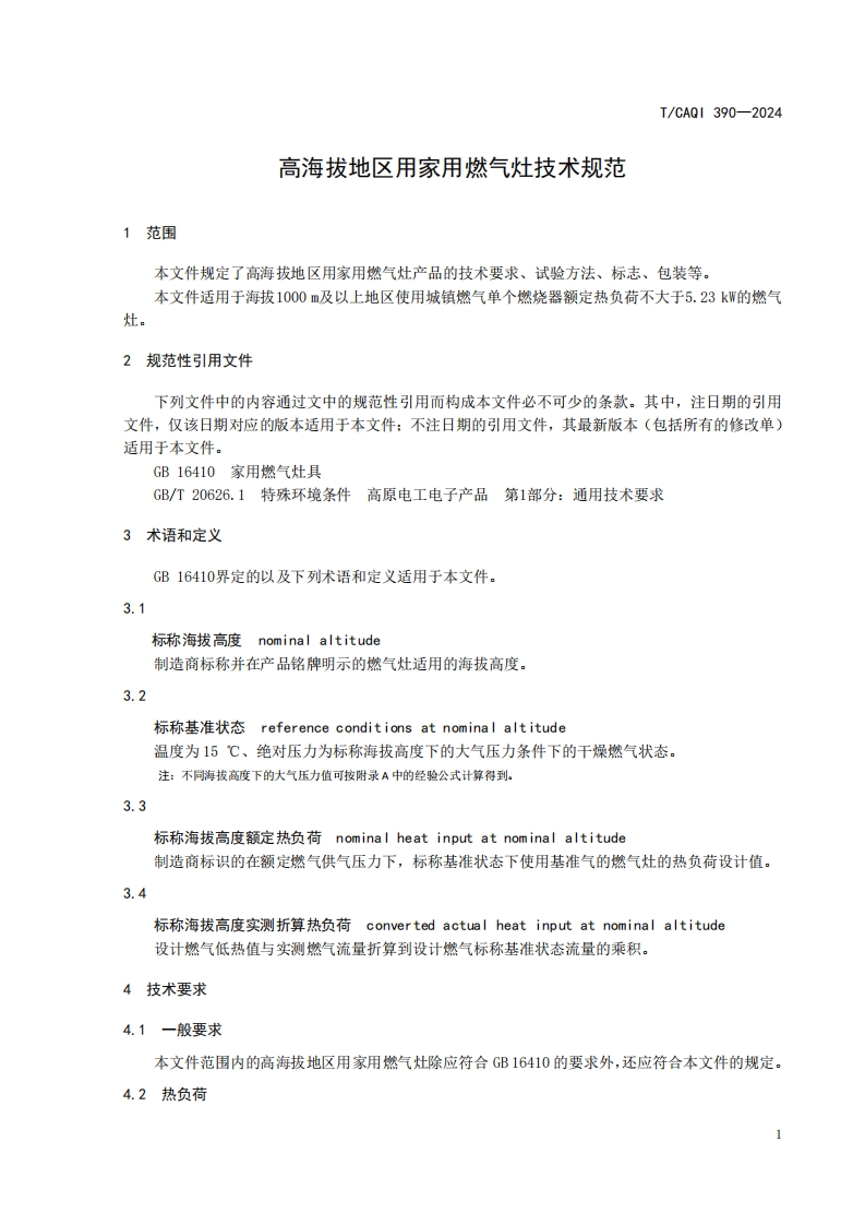 T-CAQI-390-2024《高海拔地区用家用燃气灶技术规范》348072@abc昨天发布关注私信1.19MB8页020T-CAQI-390-2024《高海拔地区用家用燃气灶技术规范》此内容为付费资源,请付费后查看¥19¥39黄金会员免费钻石会员免费立即购买您当前未登录!建议登陆后购买,可保存购买订单付费资源 第1页 / 共8页 第2页 / 共8页 第3页 / 共8页 第4页 / 共8页 第5页 / 共8页 试读已结束,还剩3页,您可下载完整版后进行离线阅读 THE END标准规范 文本预览 1Cs97.040.20CCS Q 82T团体标准T/CAQI390-2024高海拔地区用家用燃气灶技术规范Technical specifications of domestic gas stove for high altitudes2024-08-05发布2024-08-19实施中国质量检验协会发布 查看更多 收起部分 喜欢就支持一下吧收藏