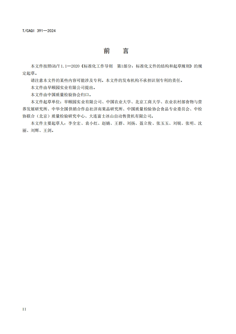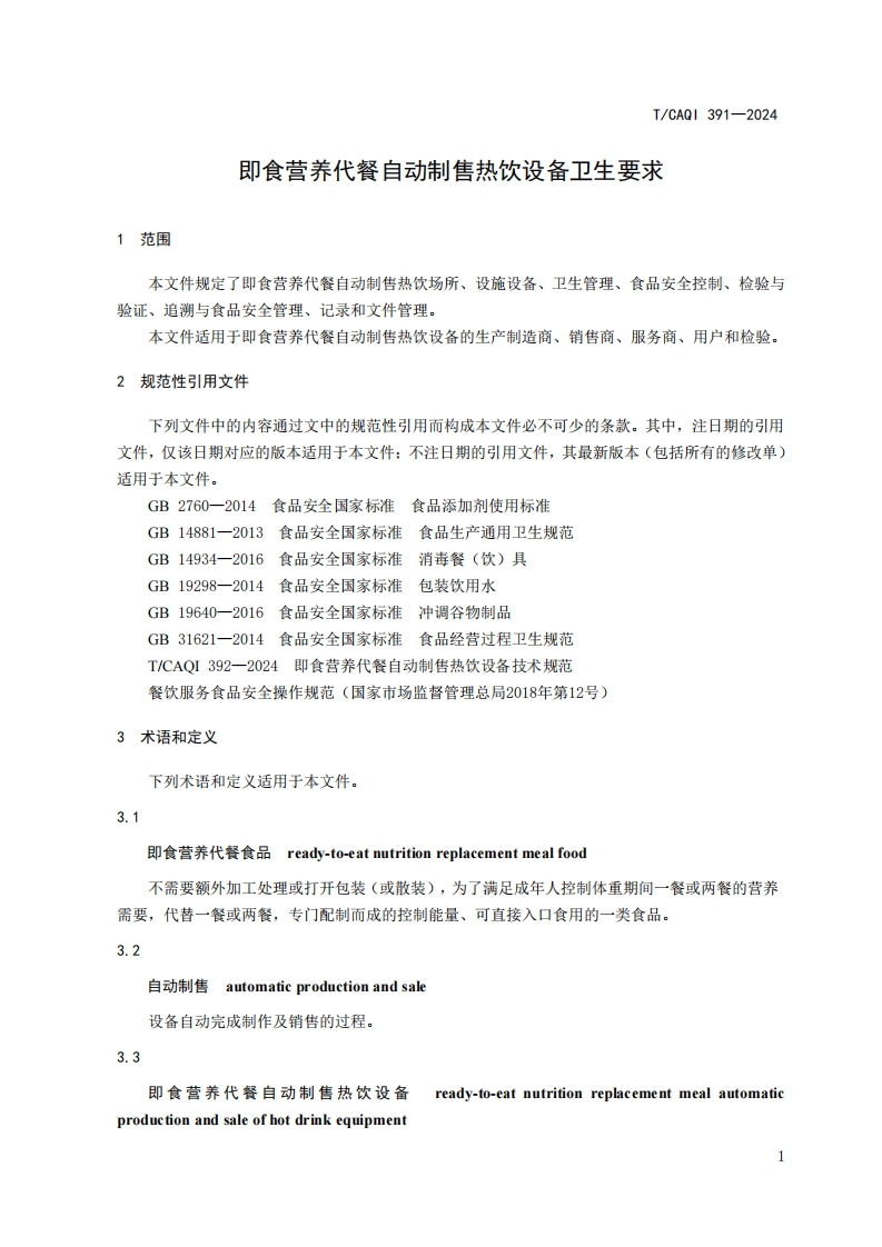 T-CAQI-391-2024《即食营养代餐自动制售热饮设备卫生要求》348072@abc昨天发布关注私信0.23MB6页041T-CAQI-391-2024《即食营养代餐自动制售热饮设备卫生要求》此内容为付费资源,请付费后查看¥19¥39黄金会员免费钻石会员免费立即购买您当前未登录!建议登陆后购买,可保存购买订单付费资源 第1页 / 共6页 第2页 / 共6页 第3页 / 共6页 第4页 / 共6页 第5页 / 共6页 试读已结束,还剩1页,您可下载完整版后进行离线阅读 THE END标准规范 文本预览 1CS67.160.01CCS X 50T团体标准T/CAQI391-2024即食营养代餐自动制售热饮设备卫生要求Hygiene requirements for ready-to-eat nutrition replacement meal automaticproduction and sale of hot drink equipment2024-05-23发布2024-0601实施中国质量检验协会发布 查看更多 收起部分 喜欢就支持一下吧收藏