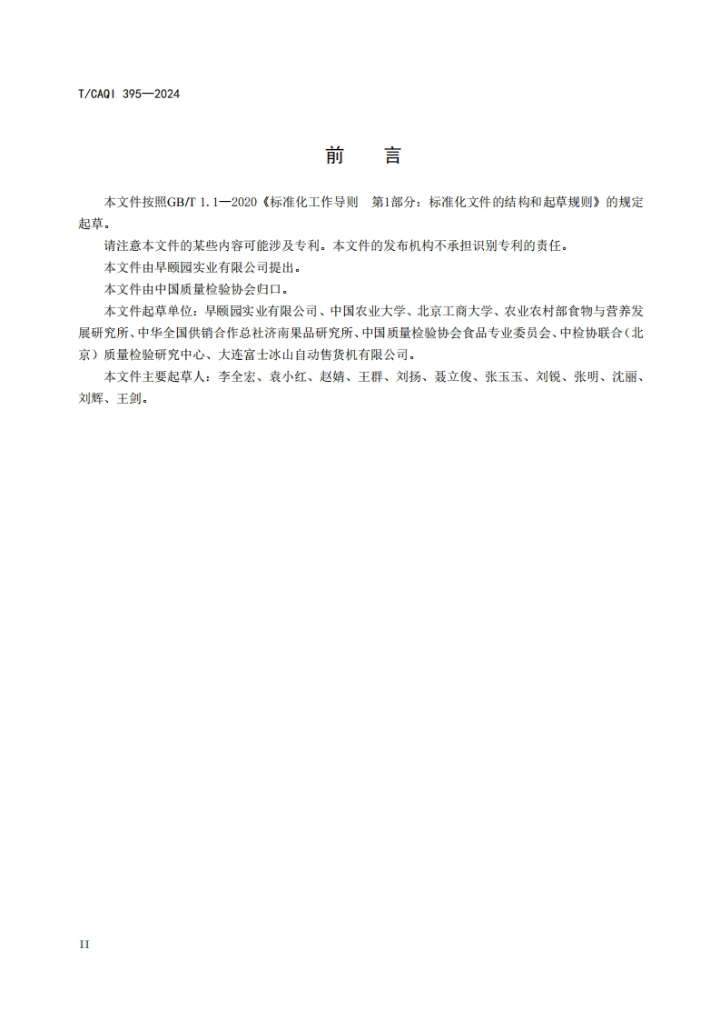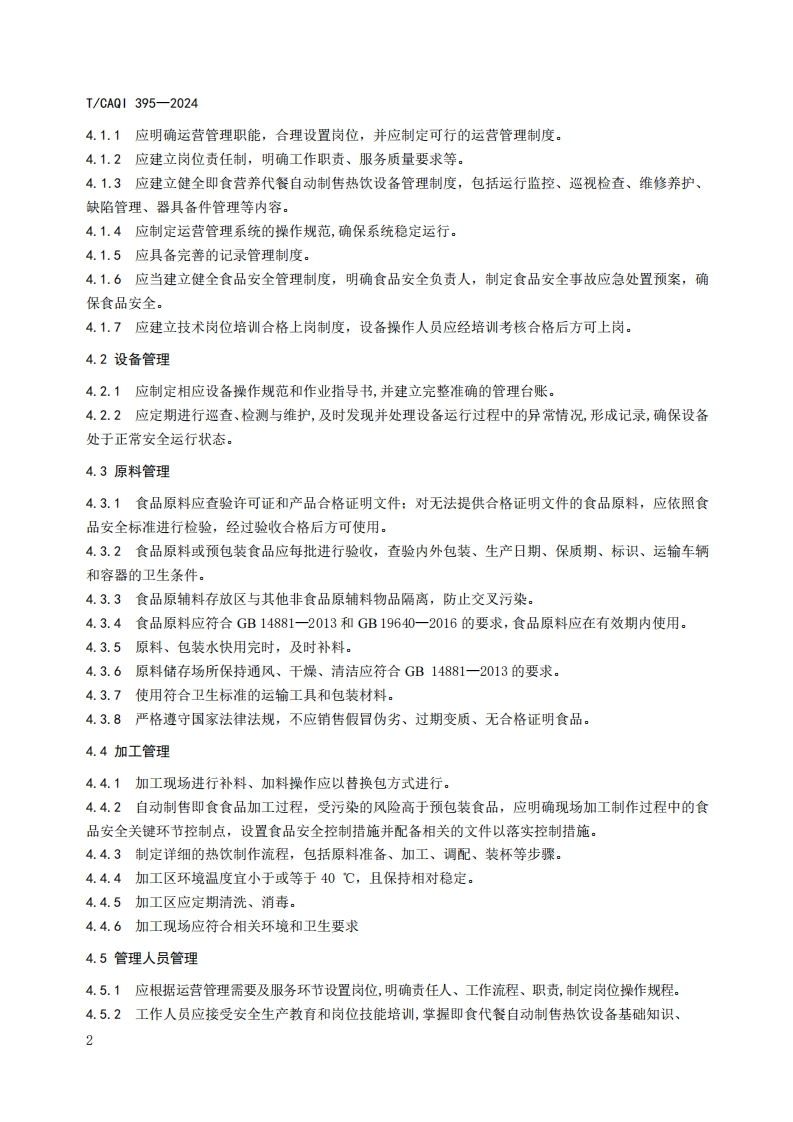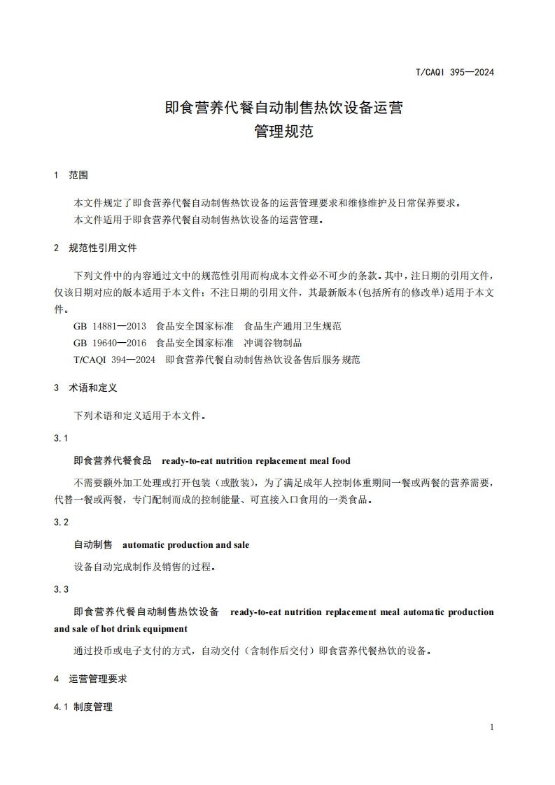 ICS55.230CCS Y 69T团体标准T/CAQI395-2024即食营养代餐自动制售热饮设备运营管理规范Operation and management specification of ready-to-eat replacement mealautomatic production and sale of hot drink equipment2024-05-23发布2024-06-01实施中国质量检验协会发布
