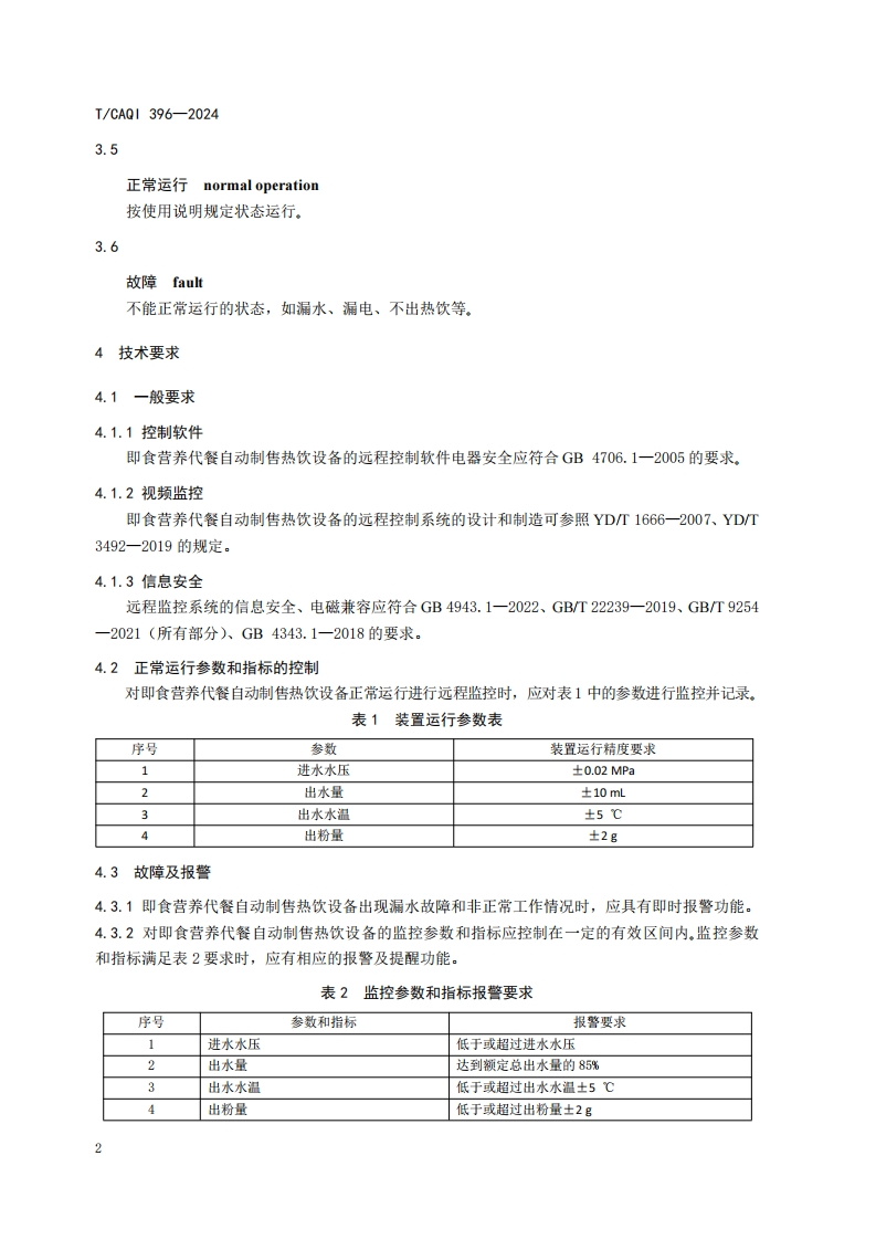 ICS55.230CCS Y 69T团体标准T/CAQI396-2024即食营养代餐自动制售热饮设备远程监控技术要求Technical requirements for remote monitoring of ready-to-eat nutritionreplacement meal automatic production and sale of hot drink equipment2024-05-23发布2024-06-01实施中国质量检验协会发布