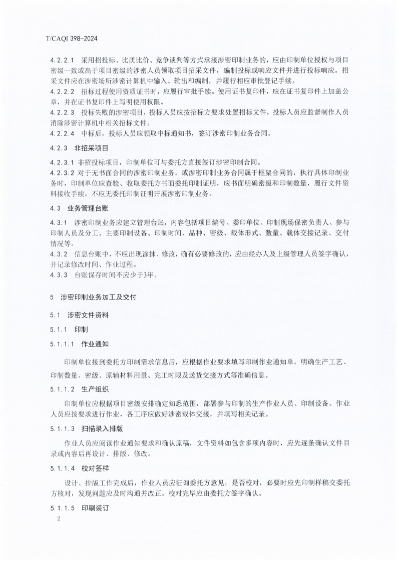 T-CAQI-398-2024《涉密印制业务管理要求》348072@abc前天发布关注私信9.46MB11页020T-CAQI-398-2024《涉密印制业务管理要求》此内容为付费资源,请付费后查看¥19¥39黄金会员免费钻石会员免费立即购买您当前未登录!建议登陆后购买,可保存购买订单付费资源 第1页 / 共11页 第2页 / 共11页 第3页 / 共11页 第4页 / 共11页 第5页 / 共11页 试读已结束,还剩6页,您可下载完整版后进行离线阅读 THE END标准规范 文本预览 1Cs37.100.01CCS A 17团体标准T/CAQI398-2024涉密印制业务管理要求Management requirements of secret-related printing business2024-07-15发布2024-07-30实施中国质量检验协会发布 查看更多 收起部分 喜欢就支持一下吧收藏