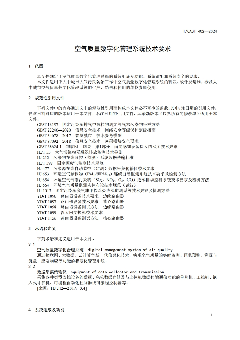 T-CAQI-402-2024《空气质量数字化管理系统技术要求》348072@abc前天发布关注私信0.54MB16页042T-CAQI-402-2024《空气质量数字化管理系统技术要求》此内容为付费资源,请付费后查看¥19¥39黄金会员免费钻石会员免费立即购买您当前未登录!建议登陆后购买,可保存购买订单付费资源 第1页 / 共16页 第2页 / 共16页 第3页 / 共16页 第4页 / 共16页 第5页 / 共16页 试读已结束,还剩11页,您可下载完整版后进行离线阅读 THE END标准规范 文本预览 ICS13.040.20CCS Z 10团体标准T/CAQI402-2024空气质量数字化管理系统技术要求Technical requirements for digital management system of air quality2024-09-23发布2024-09-30实施中国质量检验协会发布 查看更多 收起部分 喜欢就支持一下吧收藏