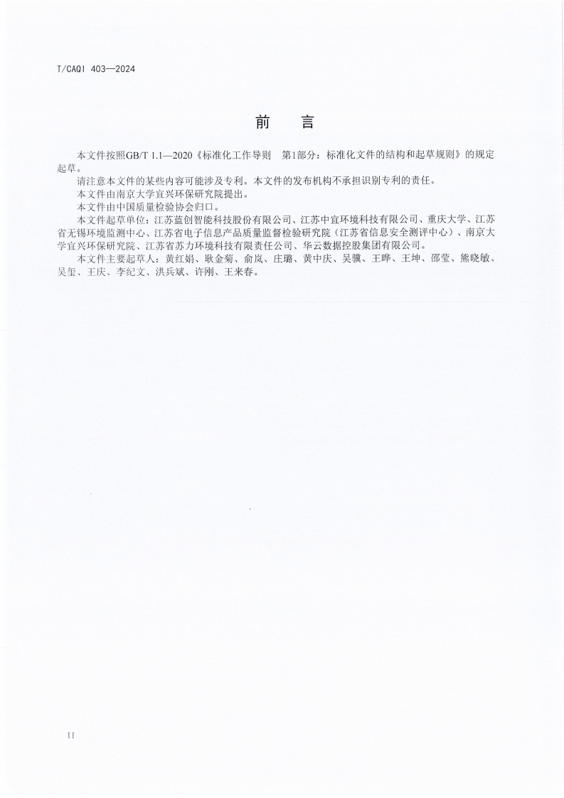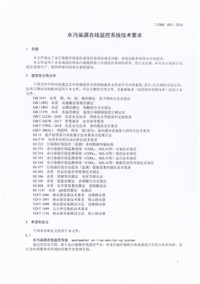 T-CAQI-403-2024《水污染源在线监控系统技术要求》348072@abc前天发布关注私信15.15MB16页026T-CAQI-403-2024《水污染源在线监控系统技术要求》此内容为付费资源,请付费后查看¥19¥39黄金会员免费钻石会员免费立即购买您当前未登录!建议登陆后购买,可保存购买订单付费资源 第1页 / 共16页 第2页 / 共16页 第3页 / 共16页 第4页 / 共16页 第5页 / 共16页 试读已结束,还剩11页,您可下载完整版后进行离线阅读 THE END标准规范 文本预览 1CS13.060.30CCS Z10团体标准T/CAQI403-2024水污染源在线监控系统技术要求Technical requirements for wastewater on-line monitor ing system2024-09-23发布2024-09-30实施中国质量检验协会发布 查看更多 收起部分 喜欢就支持一下吧收藏