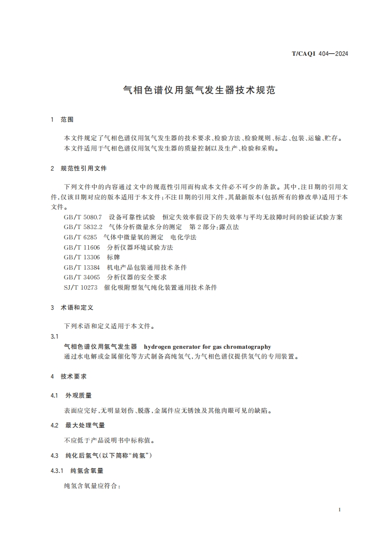 T-CAQI-404-2024《气相色谱仪用氢气发生器技术规范》348072@abc前天发布关注私信0.38MB6页023T-CAQI-404-2024《气相色谱仪用氢气发生器技术规范》此内容为付费资源,请付费后查看¥19¥39黄金会员免费钻石会员免费立即购买您当前未登录!建议登陆后购买,可保存购买订单付费资源 第1页 / 共6页 第2页 / 共6页 第3页 / 共6页 第4页 / 共6页 第5页 / 共6页 试读已结束,还剩1页,您可下载完整版后进行离线阅读 THE END标准规范 文本预览 ICS03.120.20CCS A 00团体标准T/CAQI404-2024气相色谱仪用氢气发生器技术规范Technical specification for hydrogen generators for gaschromatography2024-09-30发布2024-10-29实施中国质量检验协会发布中国标准出版社出版 查看更多 收起部分 喜欢就支持一下吧收藏