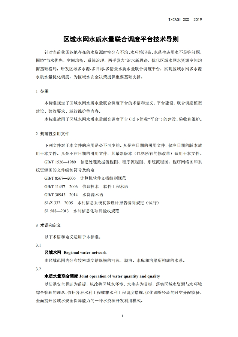 x域水网水质水量联合调度平台技术导则-Technical-guidelines-for-regional-water-network-joint-operation-platform-of-water-quality-and-quantity-(征求意见稿)348072@abc4天前发布关注私信0.28MB10页049x域水网水质水量联合调度平台技术导则-Technical-guidelines-for-regional-water-network-joint-operation-platform-of-water-quality-and-quantity-(征求意见稿)此内容为付费资源,请付费后查看¥19¥39黄金会员免费钻石会员免费立即购买您当前未登录!建议登陆后购买,可保存购买订单付费资源 第1页 / 共10页 第2页 / 共10页 第3页 / 共10页 第4页 / 共10页 第5页 / 共10页 试读已结束,还剩5页,您可下载完整版后进行离线阅读 THE END标准规范 文本预览 ICS13.060Z10T/CAQI中国质量检验协会团体标准T/CAQI XXX-2019区域水网水质水量联合调度平台技术导则Technical guidelines for regional water network joint operation platform of waterquality and quantity(征求意见稿)2019-*.*发布2019-**.*实施中国质量检验协会发布 查看更多 收起部分 喜欢就支持一下吧收藏
