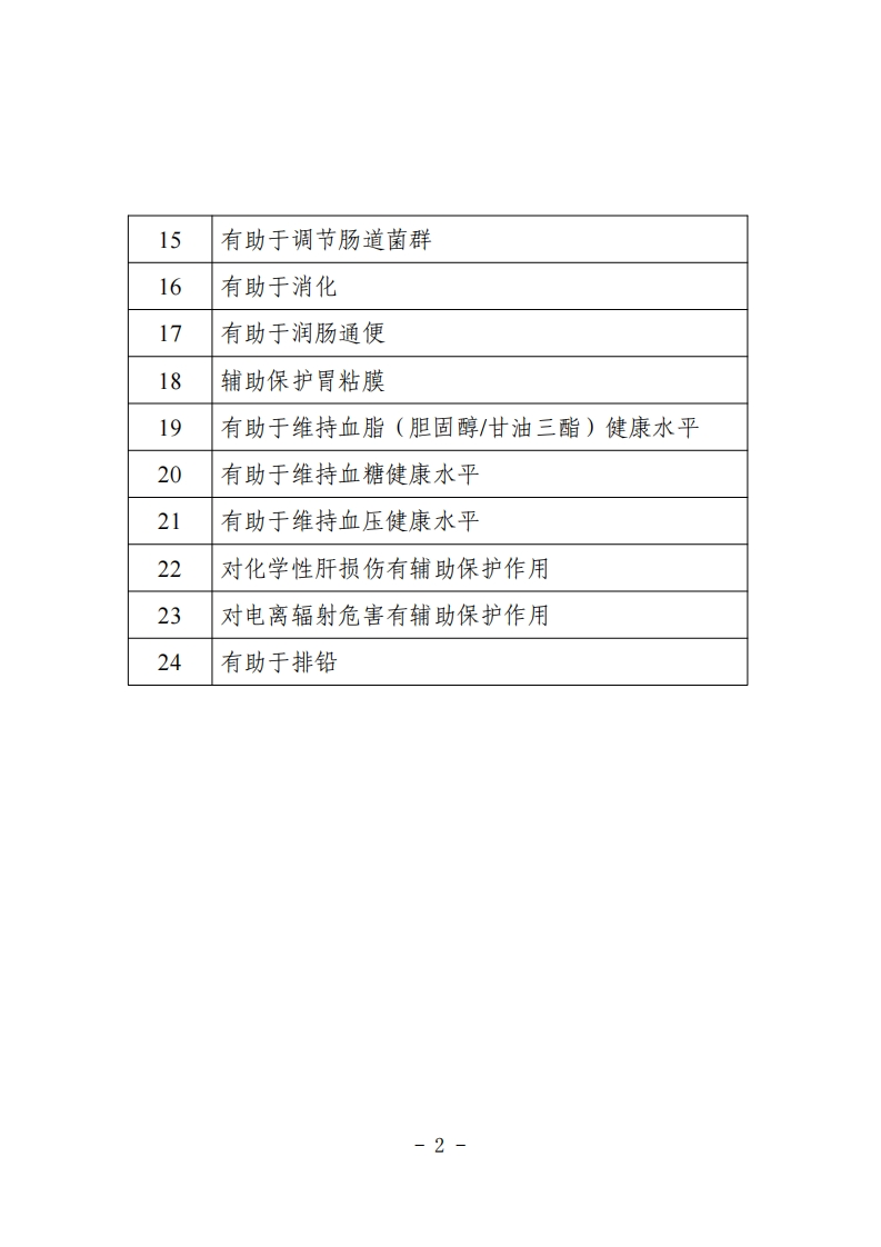 《允许保健食品声称的保健功能目录-非营养素补充剂(2023年版)》348072@abc4天前发布关注私信77.22KB2页046《允许保健食品声称的保健功能目录-非营养素补充剂(2023年版)》此内容为付费资源,请付费后查看¥19¥39黄金会员免费钻石会员免费立即购买您当前未登录!建议登陆后购买,可保存购买订单付费资源 第1页 / 共2页 第2页 / 共2页 已完成全部阅读,共2页 THE END标准规范 文本预览 允许保健食品声称的保健功能日录非营养素补充剂(2023年版)序号保健功能名称1有助于增强免疫力2有助于抗氧化3辅助改善记忆4缓解视觉疲劳5清咽润喉6有助于改善睡眠7缓解体力疲劳8耐缺氧9有助于控制体内脂肪10有助于改善骨密度11改善缺铁性贫血12有助于改善痤疮13有助于改善黄褐斑14有助于改善皮肤水份状况-1- 查看更多 收起部分 喜欢就支持一下吧收藏
