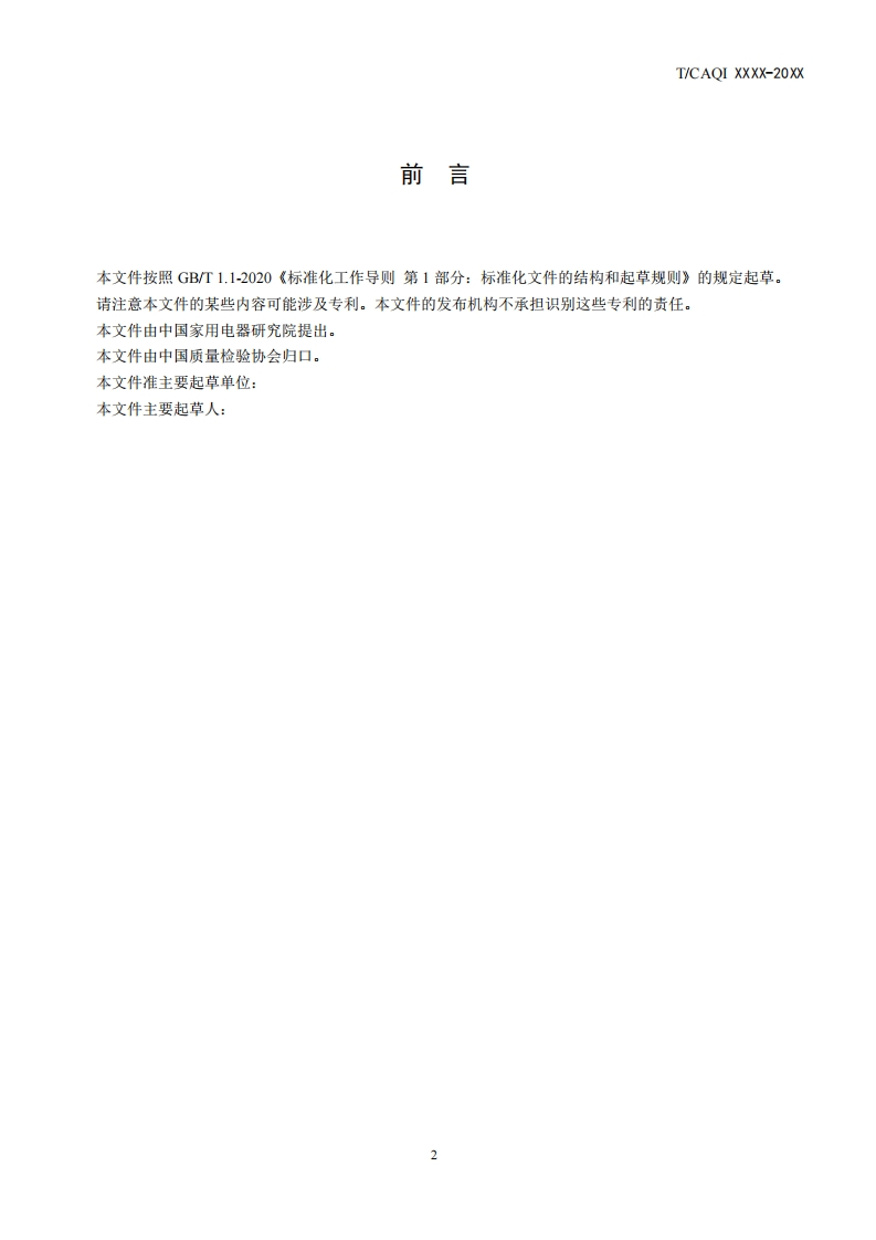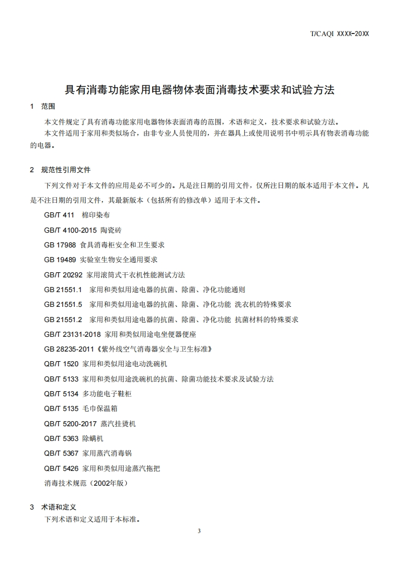 附件7T/CAQI中国质量检验协会标准团体标准T/CAQIXXXX-20XX具有消毒功能家用电器物体表面消毒技术要求和试验方法Technical requirements and test methods for surface disinfection performanceof household and similar disinfection electrical appliances(征求意见稿)XXXX-XX-XX发布XXXX-XX-XX实施中国质量检验协会发布