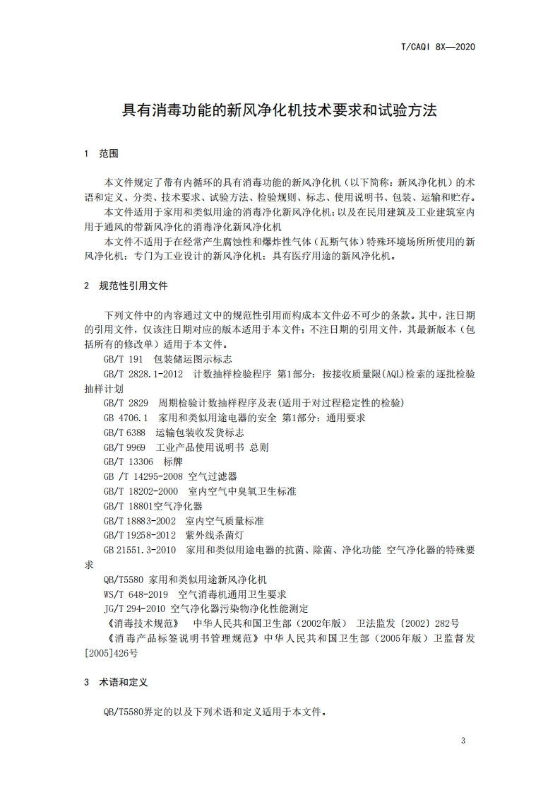 具有消毒功能的新风净化机技术要求和试-验方法-Technical-requirements-and-test-methods-of-qutside-air-clean-ventilator-with-disinfection-function-(讨论稿)348072@abc6天前发布关注私信0.30MB8页036具有消毒功能的新风净化机技术要求和试-验方法-Technical-requirements-and-test-methods-of-qutside-air-clean-ventilator-with-disinfection-function-(讨论稿)此内容为付费资源,请付费后查看¥19¥39黄金会员免费钻石会员免费立即购买您当前未登录!建议登陆后购买,可保存购买订单付费资源 第1页 / 共8页 第2页 / 共8页 第3页 / 共8页 第4页 / 共8页 第5页 / 共8页 试读已结束,还剩3页,您可下载完整版后进行离线阅读 THE END标准规范 文本预览 ICS97.180Y69CAQF中国质量检验协会团体标准T/CAQI XX-2020具有消毒功能的新风净化机技术要求和试验方法Technical requirements and test methods of qutside air clean ventilator withdisinfection function(讨论稿)2020-XX-XX发布2020-XX-XX实施中国质量检验协会发布 查看更多 收起部分 喜欢就支持一下吧收藏