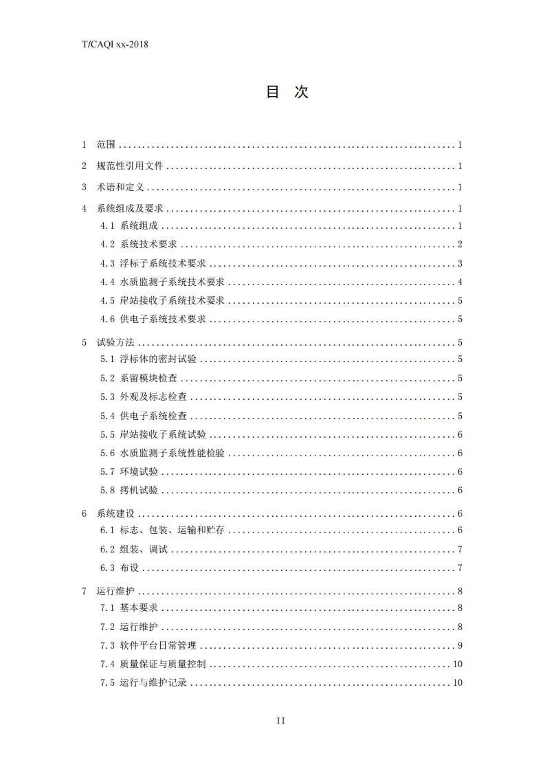 内陆水体水质监测系统-浮标式-Water-quality-monitoring-system-of-inland-water—Buoy-type-(征求意见稿)348072@abc6天前发布关注私信0.30MB14页026内陆水体水质监测系统-浮标式-Water-quality-monitoring-system-of-inland-water—Buoy-type-(征求意见稿)此内容为付费资源,请付费后查看¥19¥39黄金会员免费钻石会员免费立即购买您当前未登录!建议登陆后购买,可保存购买订单付费资源 第1页 / 共14页 第2页 / 共14页 第3页 / 共14页 第4页 / 共14页 第5页 / 共14页 试读已结束,还剩9页,您可下载完整版后进行离线阅读 THE END标准规范 文本预览 1CS13.060.20TT/CAQI中国质量检验协会团体标准T/CAQI XXX-2020内陆水体水质监测系统浮标式Water quality monitoring system of inland water-Buoy type(征求意见稿)2020-**.*发布2020-**.*实施中国质量检验协会发布 查看更多 收起部分 喜欢就支持一下吧收藏