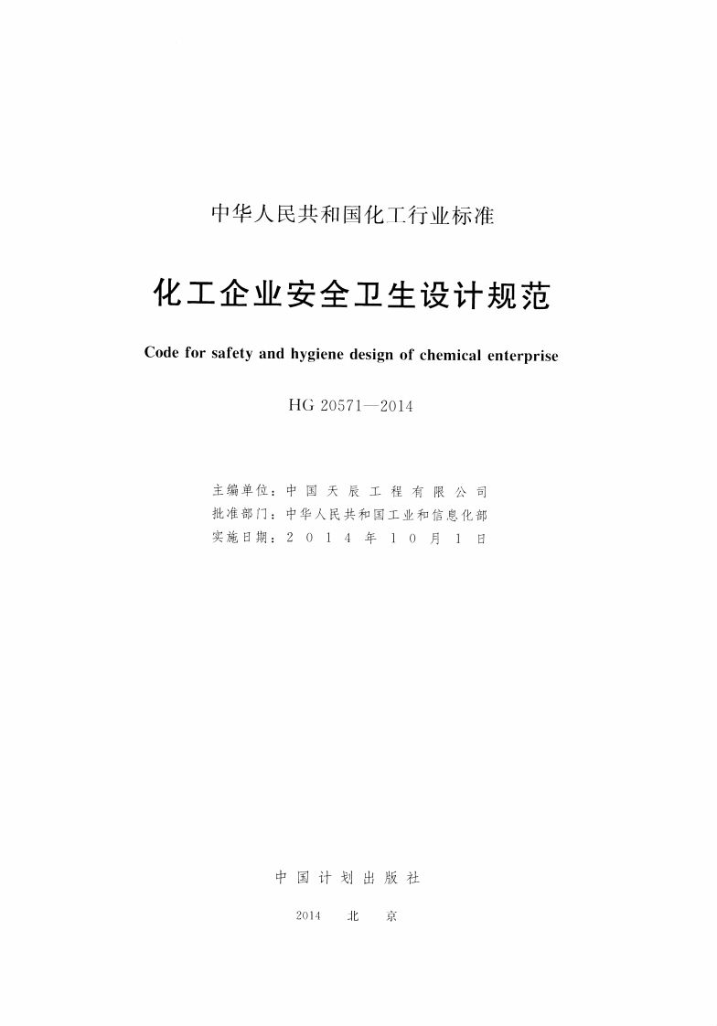 化工企业安全卫生设计规范-Code-for-safety-and-hygiene-design-of-chemical-enterprise348072@abc6天前发布关注私信4.14MB44页027化工企业安全卫生设计规范-Code-for-safety-and-hygiene-design-of-chemical-enterprise此内容为付费资源,请付费后查看¥19¥39黄金会员免费钻石会员免费立即购买您当前未登录!建议登陆后购买,可保存购买订单付费资源 第1页 / 共44页 第2页 / 共44页 第3页 / 共44页 第4页 / 共44页 第5页 / 共44页 试读已结束,还剩39页,您可下载完整版后进行离线阅读 THE END标准规范 文本预览 ICS13.100G09备案号:J1815一2014中华人民共和国化工行业标准HGHG20571-2014代替HG20571一1995化工企业安全卫生设计规范Code for safety and hygiene design of chemical enterprise2014-05-06发布2014-10-01实施中华人民共和国工业和信息化部发布 查看更多 收起部分 喜欢就支持一下吧收藏
