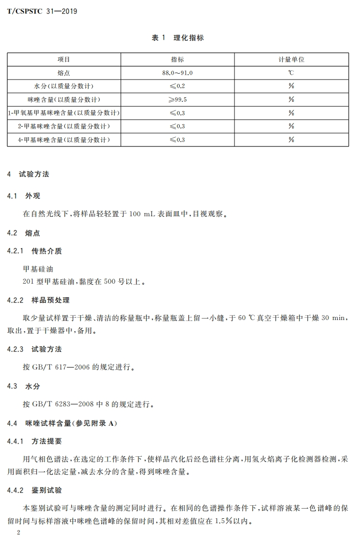 咪唑产品测试方法及技术要求-ting-methods-and-technical-requirements-of-imidazole-prouducts348072@abc8天前发布关注私信0.56MB9页029咪唑产品测试方法及技术要求-ting-methods-and-technical-requirements-of-imidazole-prouducts此内容为付费资源,请付费后查看¥19¥39黄金会员免费钻石会员免费立即购买您当前未登录!建议登陆后购买,可保存购买订单付费资源 第1页 / 共9页 第2页 / 共9页 第3页 / 共9页 第4页 / 共9页 第5页 / 共9页 试读已结束,还剩4页,您可下载完整版后进行离线阅读 THE END标准规范 文本预览 1CS67.040X18团体标准T/CSPSTC 31-2019咪唑产品测试方法及技术要求Testing methods and technical requirements of imidazole prouducts2019-08-28发布2019-11-15实施中国科技产业化促进会发布 查看更多 收起部分 喜欢就支持一下吧收藏