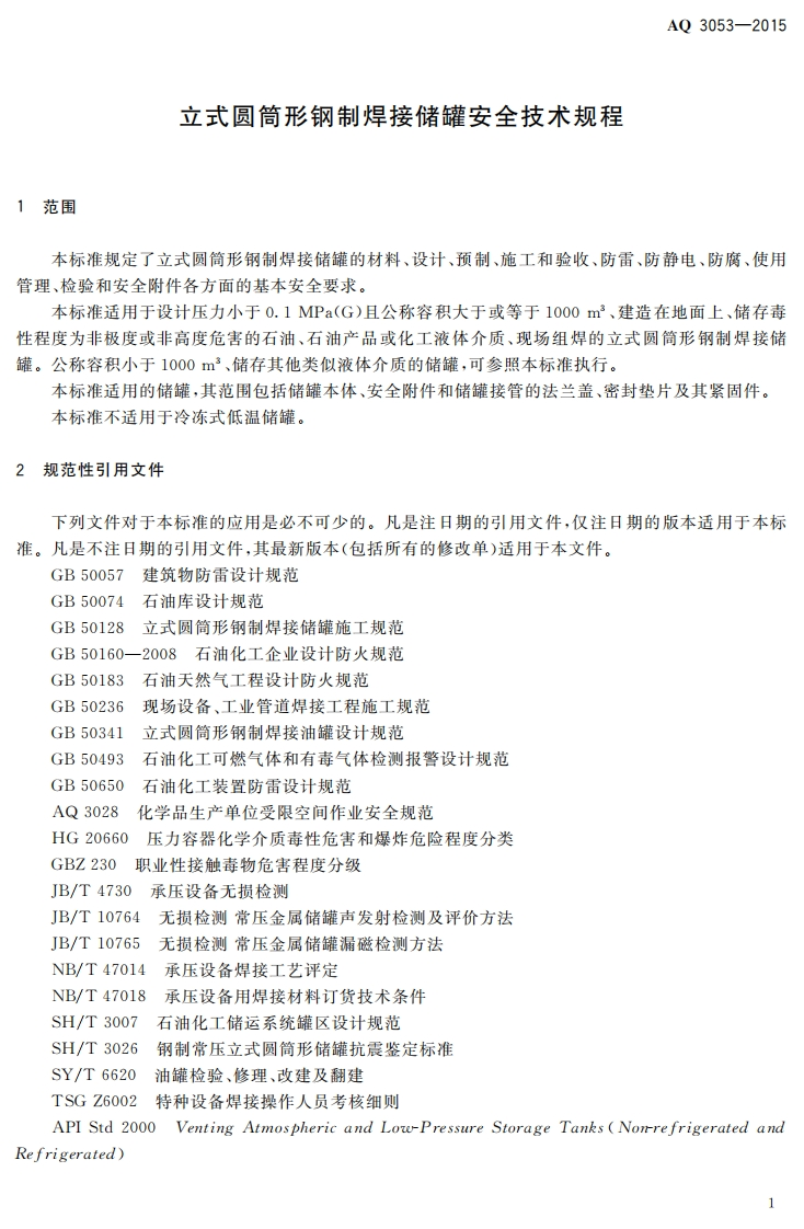 圆筒形钢制焊接储罐安全技术规程-afety-technical-code-for-vertical-cylindrical-steel-welded-tank348072@abc8天前发布关注私信2.68MB34页029圆筒形钢制焊接储罐安全技术规程-afety-technical-code-for-vertical-cylindrical-steel-welded-tank此内容为付费资源,请付费后查看¥19¥39黄金会员免费钻石会员免费立即购买您当前未登录!建议登陆后购买,可保存购买订单付费资源 第1页 / 共34页 第2页 / 共34页 第3页 / 共34页 第4页 / 共34页 第5页 / 共34页 试读已结束,还剩29页,您可下载完整版后进行离线阅读 THE END标准规范 文本预览 1CS25.160.30C68备案号:49406一2015AQ中华人民共和国安全生产行业标准AQ3053-2015立式圆筒形钢制焊接储罐安全技术规程Safety technical code for vertical cylindrical steel welded tank2015-03-09发布2015-09-01实施国家安全生产监督管理总局发布 查看更多 收起部分 喜欢就支持一下吧收藏
