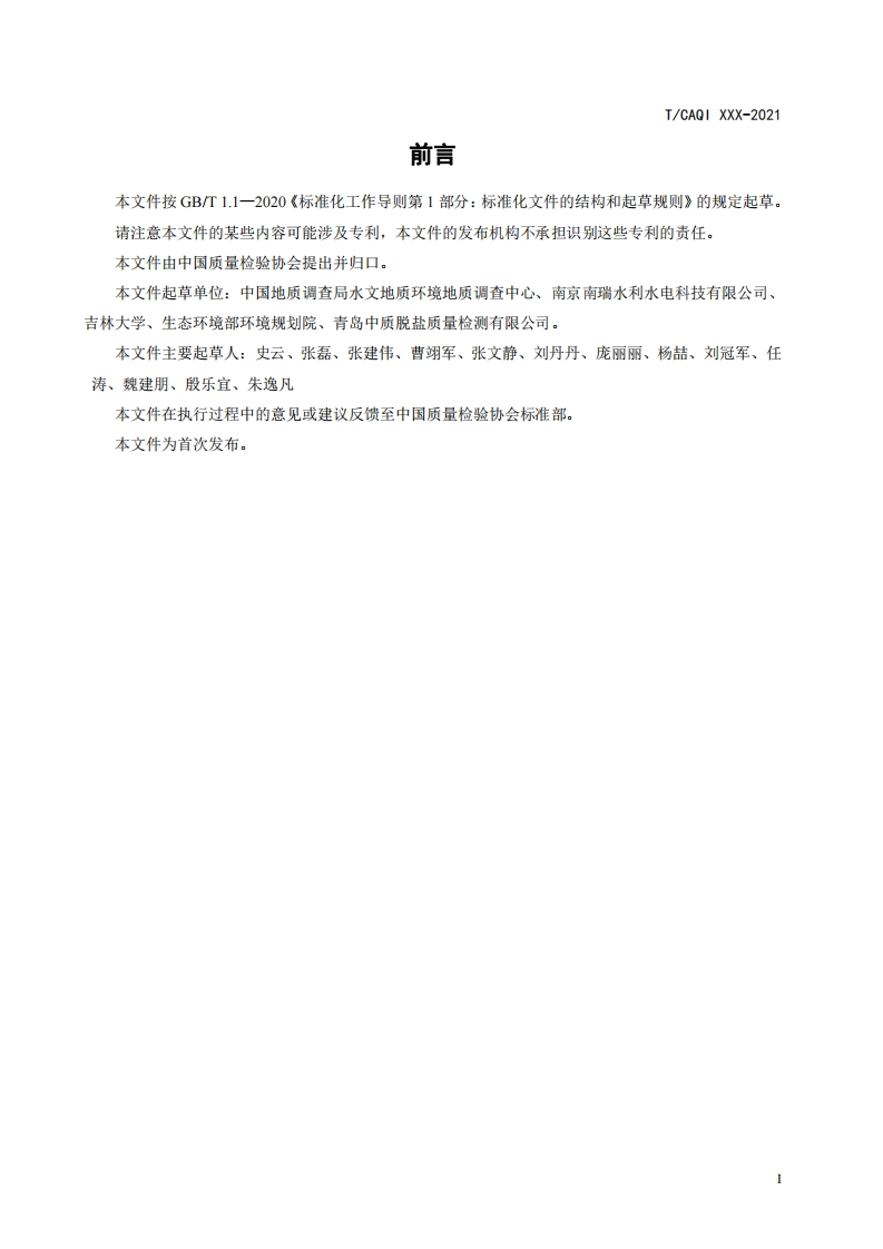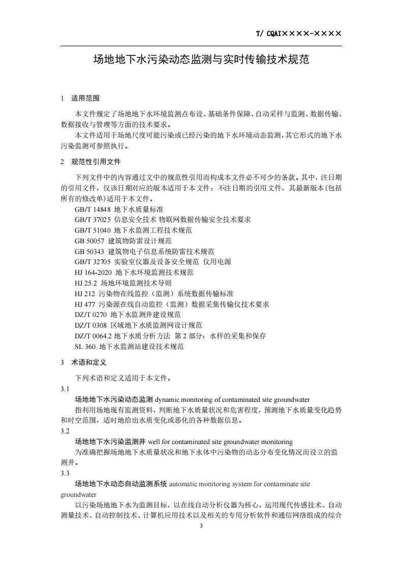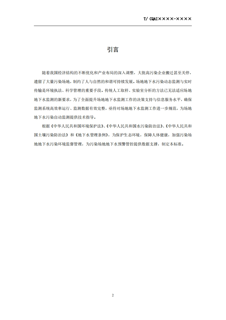 场地地下水污染动态监测与实时-传输技术规范-Technical-Specification-for-Dynamic-Monitoring-and-Real-Time-Transmission-of-Groundwater-Pollution-Site-(征求意见稿)348072@abc8天前发布关注私信0.48MB17页045场地地下水污染动态监测与实时-传输技术规范-Technical-Specification-for-Dynamic-Monitoring-and-Real-Time-Transmission-of-Groundwater-Pollution-Site-(征求意见稿)此内容为付费资源,请付费后查看¥19¥39黄金会员免费钻石会员免费立即购买您当前未登录!建议登陆后购买,可保存购买订单付费资源 第1页 / 共17页 第2页 / 共17页 第3页 / 共17页 第4页 / 共17页 第5页 / 共17页 试读已结束,还剩12页,您可下载完整版后进行离线阅读 THE END标准规范 文本预览 ICS 13.XXXZXX团体标准T/CAQI xxx-2022场地地下水污染动态监测与实时传输技术规范Technical Specification for Dynamic Monitoring and Real-TimeTransmission of Groundwater Pollution Site(征求意见稿)2022-xx-Xx发布2022-xx-xx实施中国质量检验协会发布 查看更多 收起部分 喜欢就支持一下吧收藏