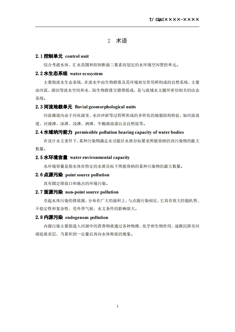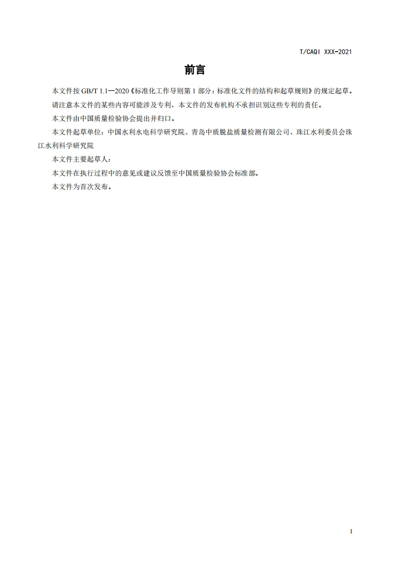 城乡河湖水环境治理修复方案编制规程-Code-ofpractice-for-Urban-rural-rivers-and-lakes-water-environment-management-and-restoration-(征求意见稿)348072@abc8天前发布关注私信0.42MB19页046城乡河湖水环境治理修复方案编制规程-Code-ofpractice-for-Urban-rural-rivers-and-lakes-water-environment-management-and-restoration-(征求意见稿)此内容为付费资源,请付费后查看¥19¥39黄金会员免费钻石会员免费立即购买您当前未登录!建议登陆后购买,可保存购买订单付费资源 第1页 / 共19页 第2页 / 共19页 第3页 / 共19页 第4页 / 共19页 第5页 / 共19页 试读已结束,还剩14页,您可下载完整版后进行离线阅读 THE END标准规范 文本预览 ICS 13.XXXZXX团体标准T/CAQI xxx-2022城乡河湖水环境治理修复方案编制规程Code of practice for Urban-rural rivers and lakes waterenvironment management and restoration(征求意见稿)2022-xx-xx发布2022-xx-xx实施中国质量检验协会发布 查看更多 收起部分 喜欢就支持一下吧收藏