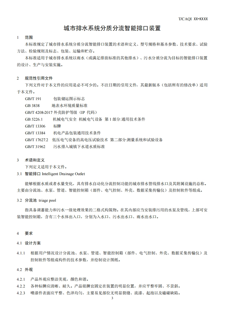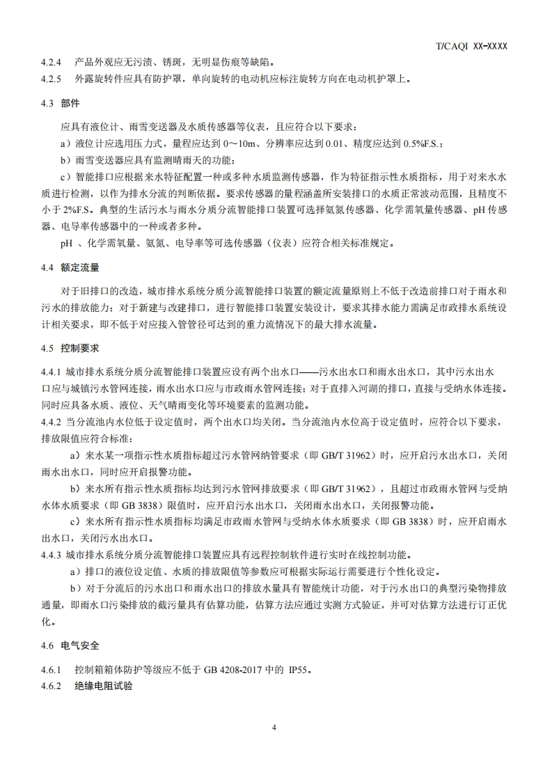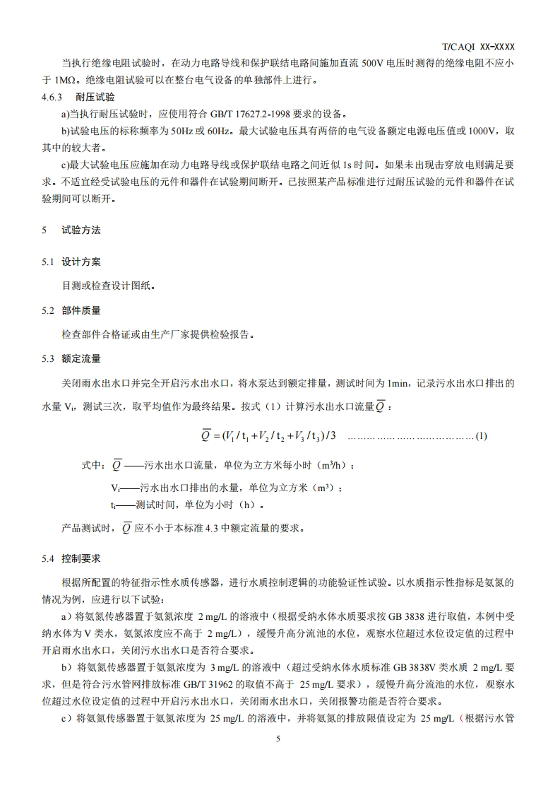城市排水系统分质分流智能排口装置-ntelligent-drainage-outlet-device-for-distributed-drainage-on-water-quality-of-urban-drainage-system-(征求意见稿)348072@abc8天前发布关注私信0.24MB8页029城市排水系统分质分流智能排口装置-ntelligent-drainage-outlet-device-for-distributed-drainage-on-water-quality-of-urban-drainage-system-(征求意见稿)此内容为付费资源,请付费后查看¥19¥39黄金会员免费钻石会员免费立即购买您当前未登录!建议登陆后购买,可保存购买订单付费资源 第1页 / 共8页 第2页 / 共8页 第3页 / 共8页 第4页 / 共8页 第5页 / 共8页 试读已结束,还剩3页,您可下载完整版后进行离线阅读 THE END标准规范 文本预览 ICs97.030Y69CAQI团体标准T/CAOI XXX-2020城市排水系统分质分流智能排口装置Intelligent drainage outlet device for distributed drainage on water qualityof urban drainage system(征求意见稿)XXXX-XX-XX发布XXXX-XX-XX实施中国质量检验协会发布 查看更多 收起部分 喜欢就支持一下吧收藏