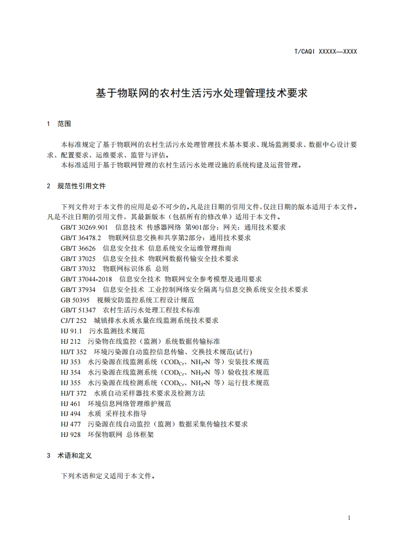 基于物联网的农村生活污水处理管理技术-要求-Fechnical-requirements-of-rural-sewage-treatment-management-based-on-internet-of-things-(征求意见稿)348072@abc9天前发布关注私信0.30MB15页023基于物联网的农村生活污水处理管理技术-要求-Fechnical-requirements-of-rural-sewage-treatment-management-based-on-internet-of-things-(征求意见稿)此内容为付费资源,请付费后查看¥19¥39黄金会员免费钻石会员免费立即购买您当前未登录!建议登陆后购买,可保存购买订单付费资源 第1页 / 共15页 第2页 / 共15页 第3页 / 共15页 第4页 / 共15页 第5页 / 共15页 试读已结束,还剩10页,您可下载完整版后进行离线阅读 THE END标准规范 文本预览 1CS13.060.30Z23CAQI中国质量检验协会团体标准T/CAQI XXXXX-XXXX基于物联网的农村生活污水处理管理技术要求Technical requirements of rural sewage treatment management based on internet ofthings(征求意见稿)XXXX-XX-XX发布XXXX-XX-XX实施中国质量检验协会发布 查看更多 收起部分 喜欢就支持一下吧收藏