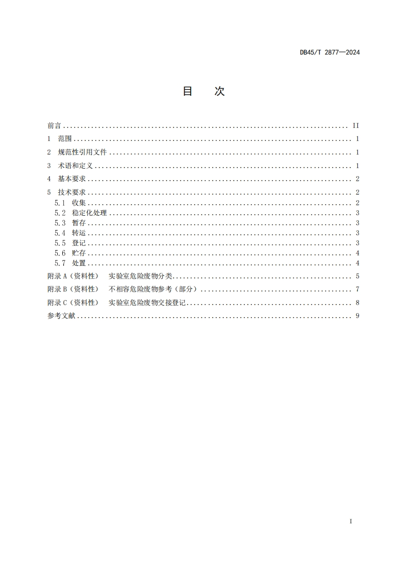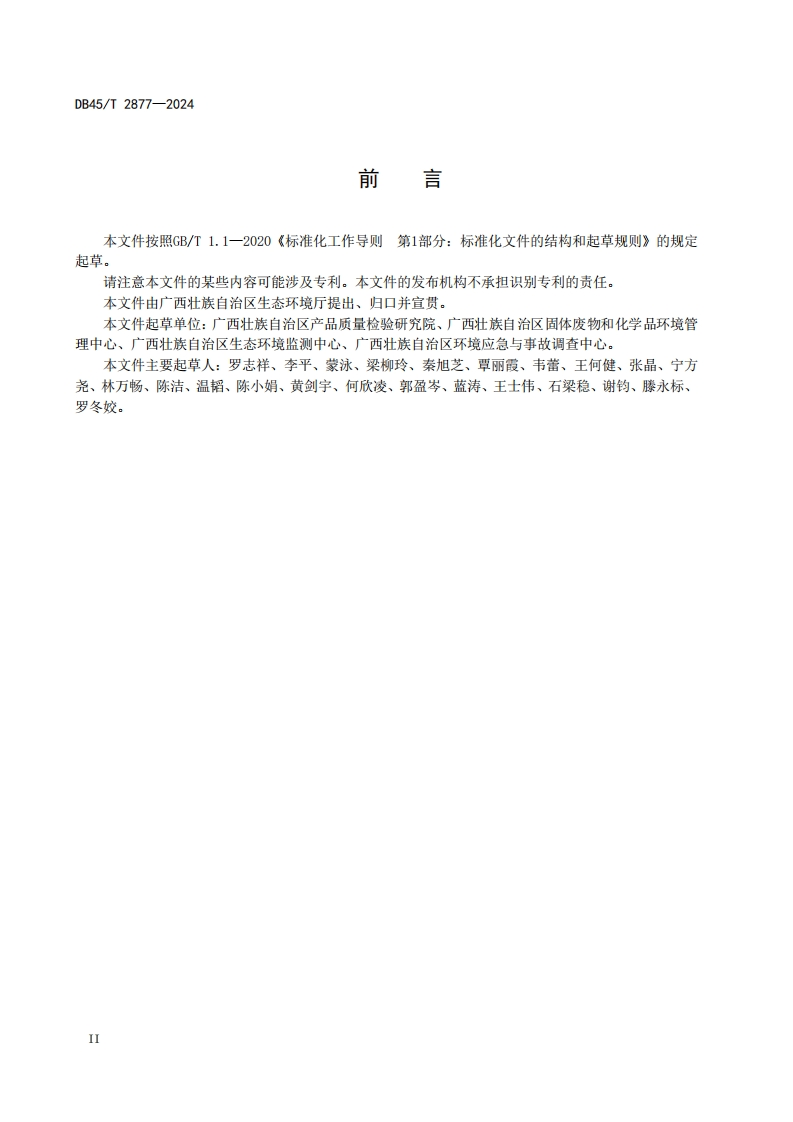 实验室危险废物环境管理技术规范348072@abc10天前发布关注私信0.44MB13页028实验室危险废物环境管理技术规范此内容为付费资源,请付费后查看¥19¥39黄金会员免费钻石会员免费立即购买您当前未登录!建议登陆后购买,可保存购买订单付费资源 第1页 / 共13页 第2页 / 共13页 第3页 / 共13页 第4页 / 共13页 第5页 / 共13页 试读已结束,还剩8页,您可下载完整版后进行离线阅读 THE END标准规范 文本预览 ICS13.040.40CCS Z 050B45广西壮族自治区地方标准DB45/T2877-2024实验室危险废物环境管理技术规范Technical specification for hazardous waste disposal in laboratory2024-09-30发布2024-12-01实施广西壮族自治区市场监督管理局发布 查看更多 收起部分 喜欢就支持一下吧收藏