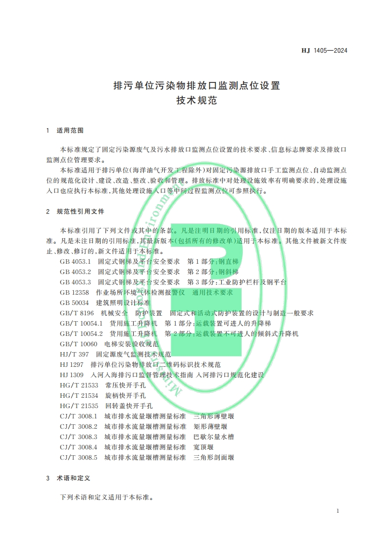 HJ中华人民共和国国家生态环境标准HJ1405一2024oment排污单位污染物排放口监测点位设置技术规范Technical specification for measurement site setting of pollutant dischargeoutlet of pollutant discharge unit本电子版为正式标准文本,由生态环境部环境标准研究所审校排版。国Jo Knsyutw2024-12-25发布2027-01-01实施生态环境部发布