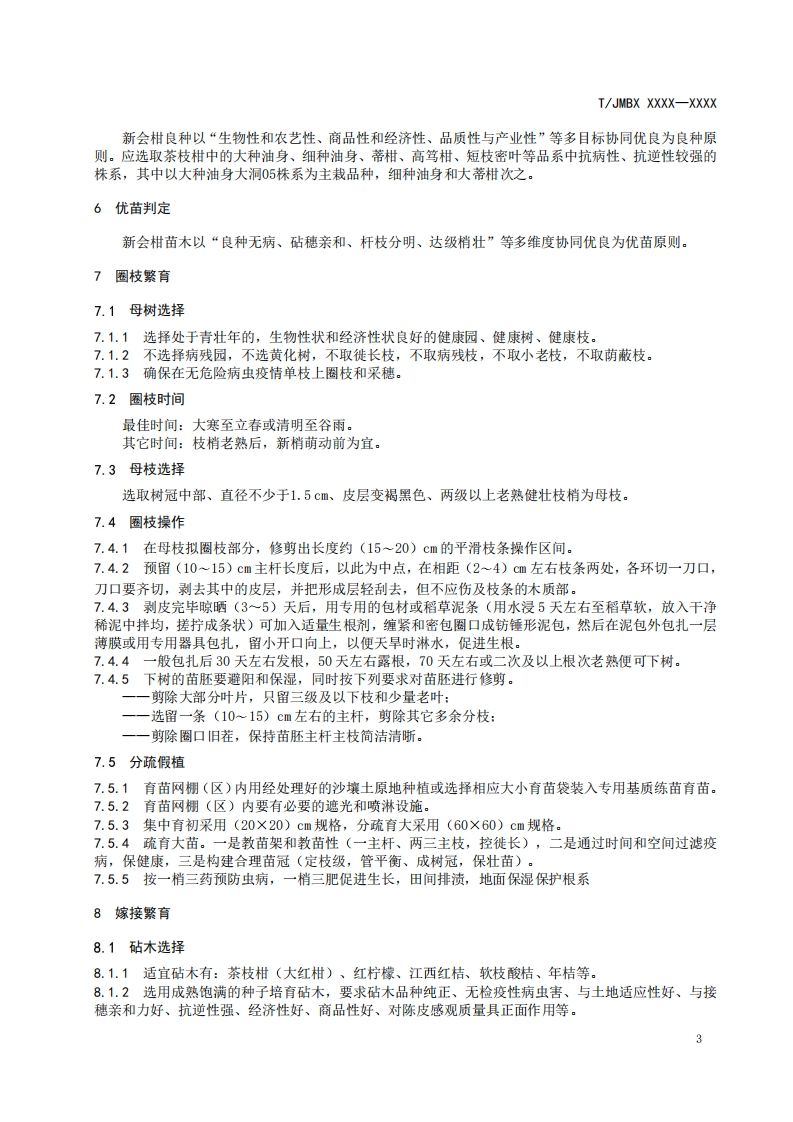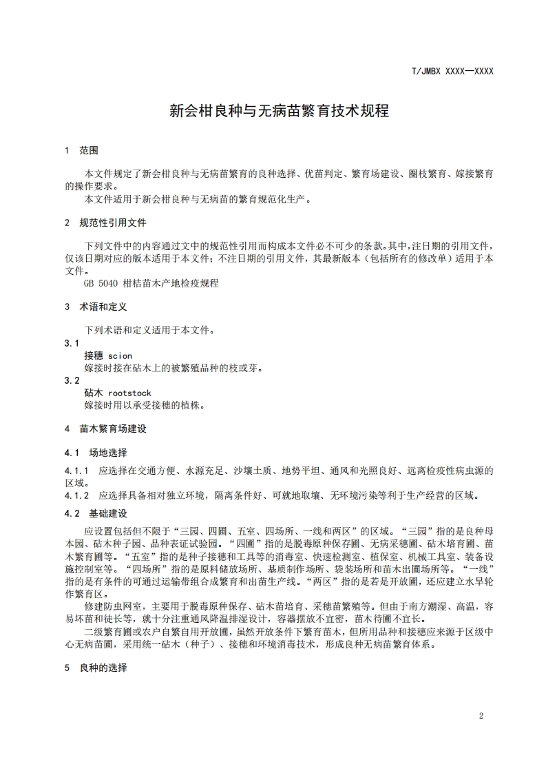 ICS65.020.20CCS B21JMBX团体标准T/JMBX XXXX-XXXX新会柑良种与无病苗繁育技术规程Good seeds and disease-free seedlings of Xinhui mandarin breeding technologyregulations(征求意见稿)在提交反馈意见时,请将您知道的相关专利连同支持性文件一并附上。2025-Xx-XX发布2025-Xx-XX实施江门市标准化协会发布