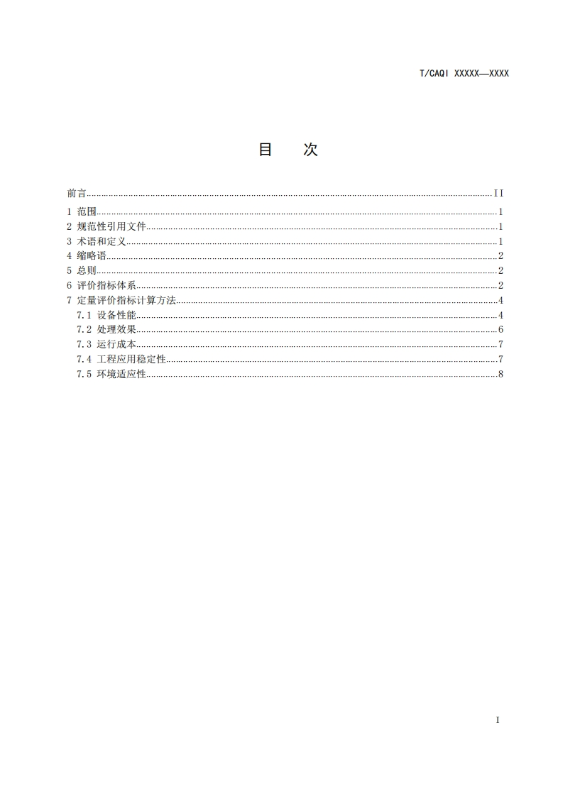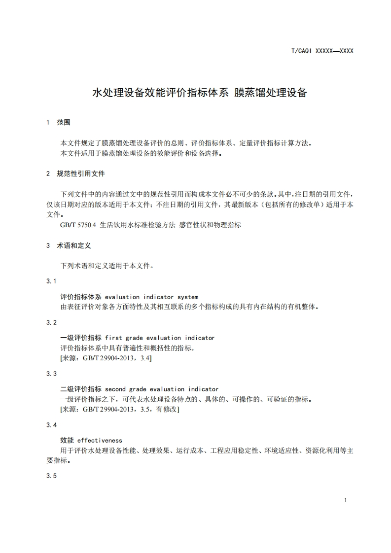 1Cs13.030.20Z05CAOI中国质量检验协会团体标准T/CAQI XX-XXXX水处理设备效能评价指标体系膜蒸馏处理设备Evaluation indicator system for effectiveness of water treatmentfacilities membrane distil lation water treatment faci lity(征求意见稿)xxx发布XxxX实施中国质量检验协会发布
