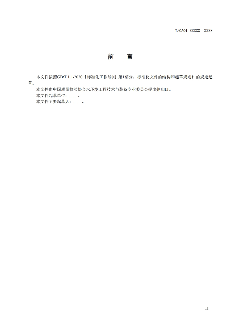 污水生物处理系统能效测算方法-Calculation-method-for-energy-efficiency-of-wastewater-biological-treatment-system-(征求意见稿)348072@abc9天前发布关注私信0.26MB9页037污水生物处理系统能效测算方法-Calculation-method-for-energy-efficiency-of-wastewater-biological-treatment-system-(征求意见稿)此内容为付费资源,请付费后查看¥19¥39黄金会员免费钻石会员免费立即购买您当前未登录!建议登陆后购买,可保存购买订单付费资源 第1页 / 共9页 第2页 / 共9页 第3页 / 共9页 第4页 / 共9页 第5页 / 共9页 试读已结束,还剩4页,您可下载完整版后进行离线阅读 THE END标准规范 文本预览 10513.030.40P41CAQI中国质量检验协会团体标准T/CAQIXXXXX-XXXX污水生物处理系统能效测算方法Cal culation method for energy efficiency of wastewater biologicaltreatment system(征求意见稿)XXXX-XX-XX发布XXXX-XX-XX实施中国质量检验协会发布 查看更多 收起部分 喜欢就支持一下吧收藏