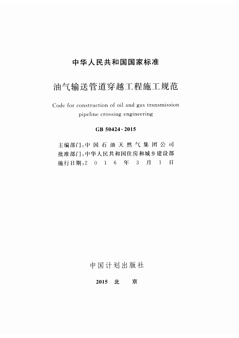 油气输送管道穿越工程施工规范-Code-for-construction-of-oil-and-gas-transmission-pipeline-crossing-engineering348072@abc9天前发布关注私信9.50MB182页024油气输送管道穿越工程施工规范-Code-for-construction-of-oil-and-gas-transmission-pipeline-crossing-engineering此内容为付费资源,请付费后查看¥19¥39黄金会员免费钻石会员免费立即购买您当前未登录!建议登陆后购买,可保存购买订单付费资源 第1页 / 共182页 第2页 / 共182页 第3页 / 共182页 第4页 / 共182页 第5页 / 共182页 试读已结束,还剩177页,您可下载完整版后进行离线阅读 THE END标准规范 文本预览 UDC中华人民共和国国家标准PGB50424-2015油气输送管道穿越工程施工规范Code for construction of oil and gas transmissionpipeline crossing engineering2015-06-26发布2016-03-01实施中华人民共和国住房和城乡建设部联合发布中华人民共和国国家质量监督检验检疫总局 查看更多 收起部分 喜欢就支持一下吧收藏