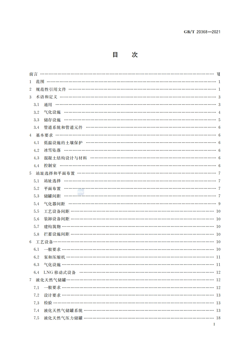 ICs75.060CCS E 24中华人民共和国国家标准GB/T20368一2021代替GB/T20368一2012液化天然气(LNG)生产、储存和装运Production,storage and handling of liquefied natural gas(LNG)2021-08-20发布2022-03-01实施国家市场监督管理总局发布国家标准化管理委员会