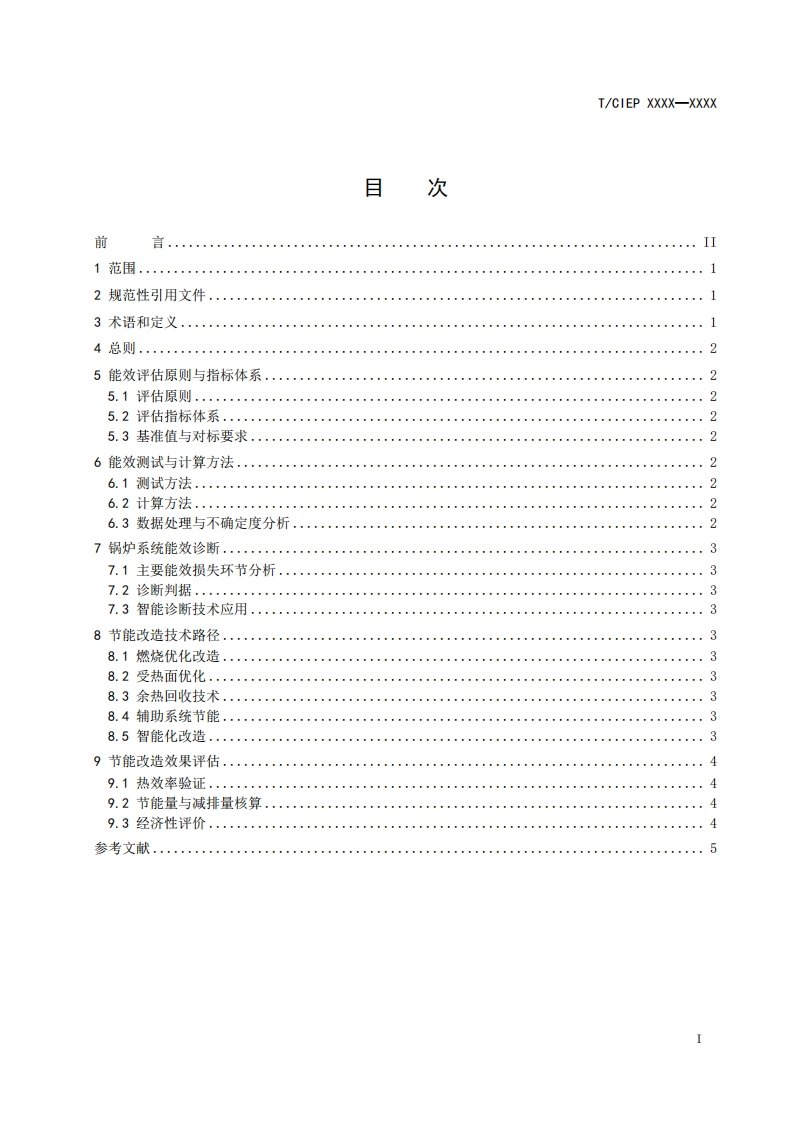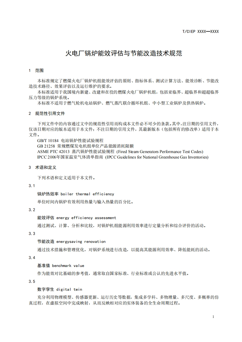 ICS27.060.01CCS P61/CIEP中国工业环保促进会团体标准T/CIEP XXXX-XXXX火电厂锅炉能效评估与节能改造技术规范Technical specification for energy efficiency assessment and energysavingrenovation of utility boilers in thermal power plants(征求意见稿)在提交反馈意见时,请将您知道的相关专利连同支持性文件一并附上。XXXX-Xx-XX发布XXXX-Xx-XX实施中国工业环保促进会发布
