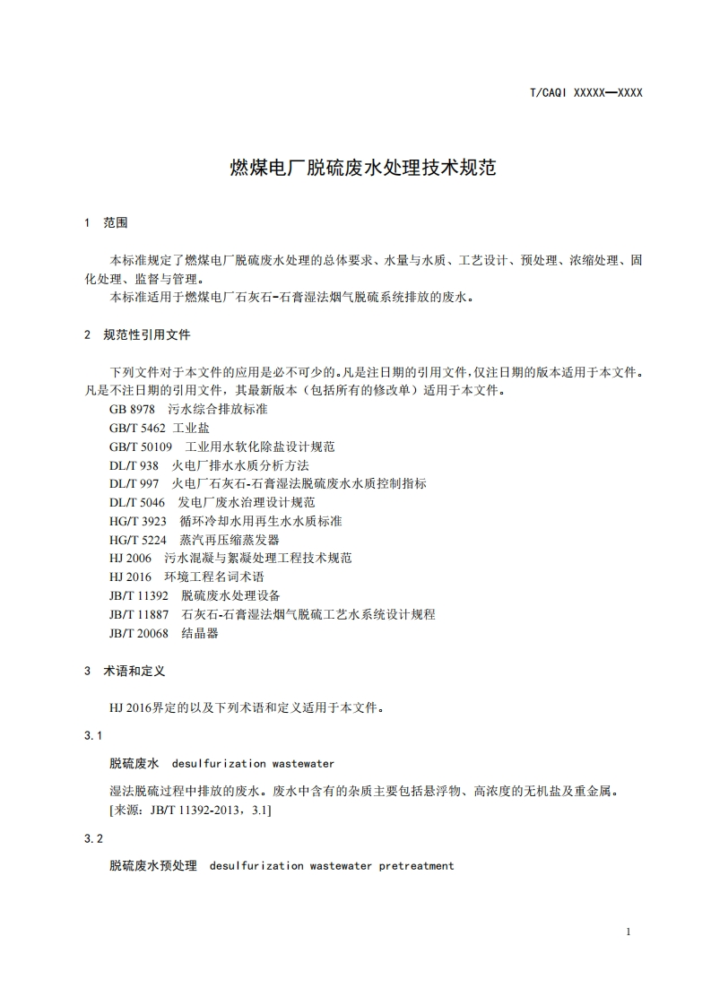 燃煤电厂脱硫废水处理技术规范-Technical-specification-for-desulfurization-wastewater-treatment-in-coal-fired-power-plants-(征求意见稿)348072@abc10天前发布关注私信0.22MB10页039燃煤电厂脱硫废水处理技术规范-Technical-specification-for-desulfurization-wastewater-treatment-in-coal-fired-power-plants-(征求意见稿)此内容为付费资源,请付费后查看¥19¥39黄金会员免费钻石会员免费立即购买您当前未登录!建议登陆后购买,可保存购买订单付费资源 第1页 / 共10页 第2页 / 共10页 第3页 / 共10页 第4页 / 共10页 第5页 / 共10页 试读已结束,还剩5页,您可下载完整版后进行离线阅读 THE END标准规范 文本预览 1CS13.030.20Z05CAQI中国质量检验协会团体标准T/CAQI XXXXX-XXXX燃煤电厂脱硫废水处理技术规范Technical specification for desulfurization wastewater treatment in coal-fired powerplants(征求意见稿)XXXX-XX-XX发布XXXX-XX-XX实施中国质量检验协会发布 查看更多 收起部分 喜欢就支持一下吧收藏