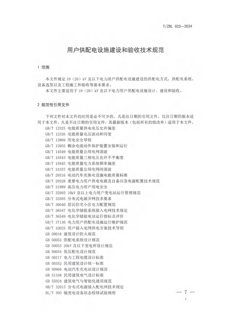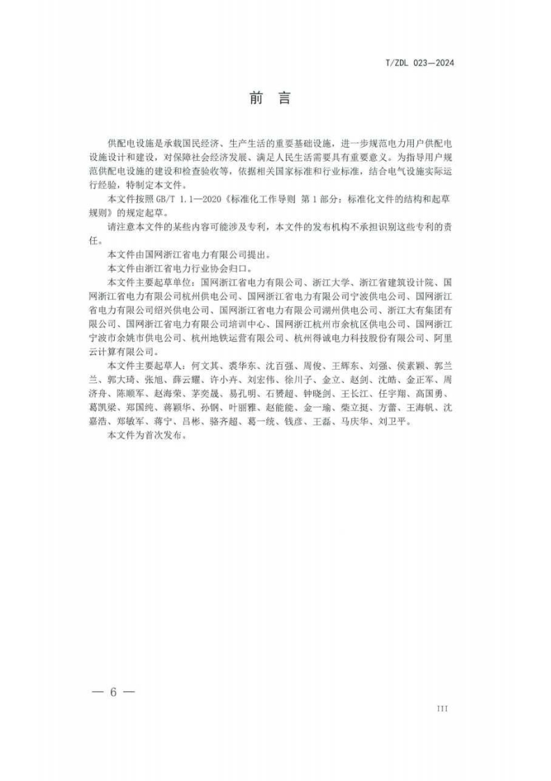 1cs29.240.01C0SD4420T/ZDL浙江省电力行业协会团体标准T/ZDL023-2024用户供配电设施建设和验收技术规范Technical Specifications for the Construction andAcceptance of User Power Supply and Distribution Facilities2024-09-20发布2024-10-01实施浙江省电力行业协会发布