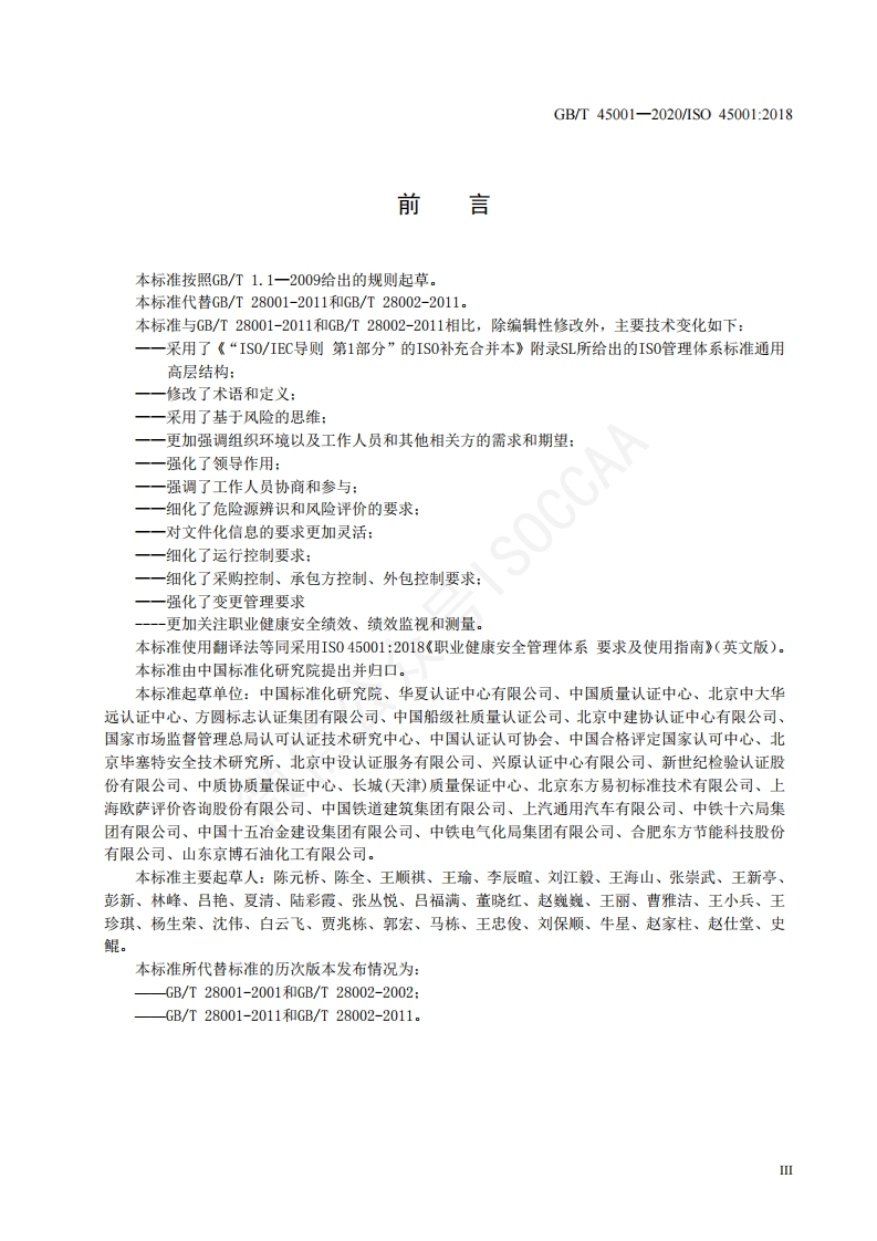 1Cs13.100C78中华人民共和国国家标准GB/T45001-2020/1S045001:2018代替GB/T28001-2011和GB/T28002-2011职业健康安全管理体系要求及使用指南Occupational health and safety management systems-Requirements with guidance for useS045001:2018,1DT)微信2020-03-06发布2020-03-06实施中华人民共和国国家市场监督管理总局中国国家标准化管理委员会发布