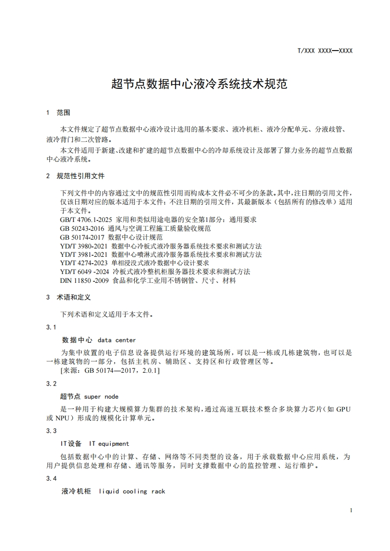ICS33.040.40CCS M32/CIEP中国工业环保促进会团体标准T/CIEP XXXX-XXXX超节点数据中心液冷系统技术规范Technical specifications for liquid cooling systems in super node data centers(征求意见稿)在提交反债意见时,请将您知道的相关专利连同支持性文件一并附上。XXXX-Xx-XX发布XXXX-Xx-XX实施中国工业环保促进会发布