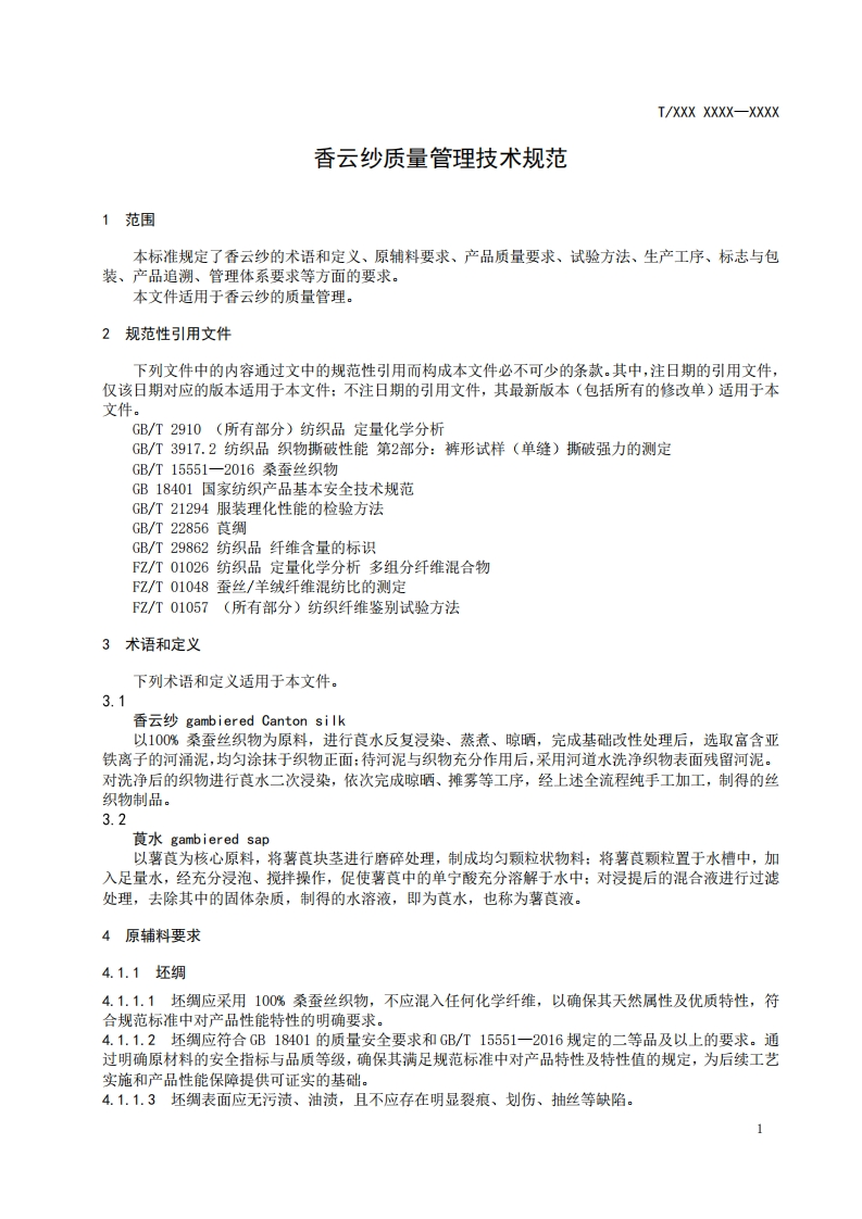 香云纱质量管理技术规范-Technical-specification-of-quality-management-for-gambiered-canton-silk-(征求意见稿)-在提交反馈意见时请将您知道的相关专利连同支持性文件一并附上348072@abc10天前发布关注私信0.32MB8页027香云纱质量管理技术规范-Technical-specification-of-quality-management-for-gambiered-canton-silk-(征求意见稿)-在提交反馈意见时请将您知道的相关专利连同支持性文件一并附上此内容为付费资源,请付费后查看¥19¥39黄金会员免费钻石会员免费立即购买您当前未登录!建议登陆后购买,可保存购买订单付费资源 第1页 / 共8页 第2页 / 共8页 第3页 / 共8页 第4页 / 共8页 第5页 / 共8页 试读已结束,还剩3页,您可下载完整版后进行离线阅读 THE END标准规范 文本预览 ICS59.080.30CCS W 43团体标准T/XXX XXXX-XXXX香云纱质量管理技术规范Technical specification of quality management for gambiered canton silk(征求意见稿)在提交反债意见时,请将您知道的相关专利连同支持性文件一并附上。XXXX-Xx-X发布XXXX-x-XX实施广东省质量协会发布 查看更多 收起部分 喜欢就支持一下吧收藏