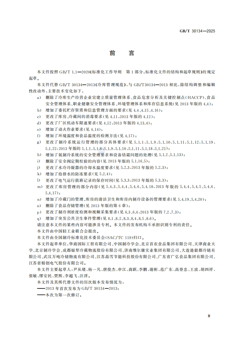 冷库管理规范Specificationforcoldstoremanagement348072@abc5天前发布关注私信0.40MB15页032冷库管理规范Specificationforcoldstoremanagement此内容为付费资源,请付费后查看¥19¥29黄金会员免费钻石会员免费立即购买您当前未登录!建议登陆后购买,可保存购买订单付费资源 第1页 / 共15页 第2页 / 共15页 第3页 / 共15页 第4页 / 共15页 第5页 / 共15页 试读已结束,还剩10页,您可下载完整版后进行离线阅读 THE END标准规范 文本预览 1CS97.130.20CCS J 73中华人民共和国国家标准GB/T30134-2025代替GB/T30134一2013冷库管理规范Specification for cold store management2025-04-25发布2025-11-01实施国家市场监督管理兽局发布国家标准化管理委员会 查看更多 收起部分 喜欢就支持一下吧收藏