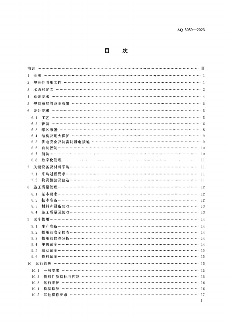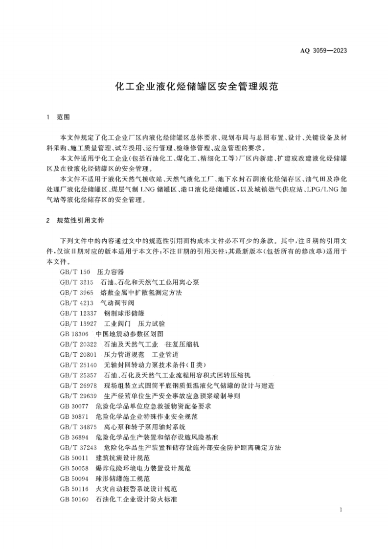 1CS13.100CCS B 09AQ中华人民共和国安全生产行业标准AQ3059-2023化工企业液化烃储罐区安全管理规范Specification for safety management of liquefied hydrocarbon storage tank farmof chemical industrial enterprises2023-12-20发布2024-04-01实施中华人民共和国应急管理部发布