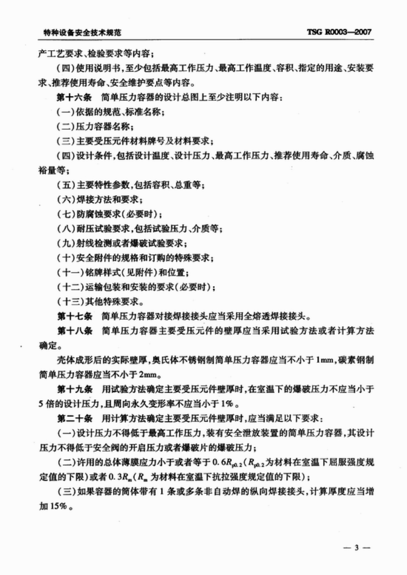 单压力容器安全技术监察规程mplePressureVesselsSafetyandTechnicalRegulations348072@abc4天前发布关注私信1.19MB11页043单压力容器安全技术监察规程mplePressureVesselsSafetyandTechnicalRegulations此内容为付费资源,请付费后查看¥19¥29黄金会员免费钻石会员免费立即购买您当前未登录!建议登陆后购买,可保存购买订单付费资源 第1页 / 共11页 第2页 / 共11页 第3页 / 共11页 第4页 / 共11页 第5页 / 共11页 试读已结束,还剩6页,您可下载完整版后进行离线阅读 THE END标准规范 文本预览 TSG特种设备安全技术规范TSGR0003-2007简单压力容器安全技术监察规程Simple Pressure Vessels Safety and Technical Regulations中华人民共和国国家质量监督检验检疫总局颁布2007年1月24日 查看更多 收起部分 喜欢就支持一下吧收藏