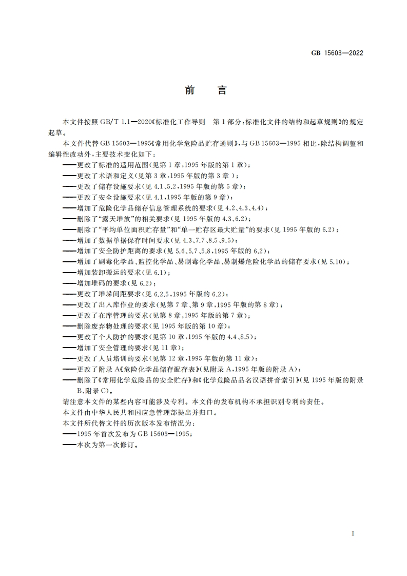 危险化学品仓库储存通则Generalrulesforthehazardouschemicalswarehousestorage348072@abc4天前发布关注私信1.27MB10页045危险化学品仓库储存通则Generalrulesforthehazardouschemicalswarehousestorage此内容为付费资源,请付费后查看¥19¥29黄金会员免费钻石会员免费立即购买您当前未登录!建议登陆后购买,可保存购买订单付费资源 第1页 / 共10页 第2页 / 共10页 第3页 / 共10页 第4页 / 共10页 第5页 / 共10页 试读已结束,还剩5页,您可下载完整版后进行离线阅读 THE END标准规范 文本预览 ICS13.200CCS A 87B中华人民共和国国家标准GB15603-2022代替GB15603一1995危险化学品仓库储存通则General rules for the hazardous chemicals warehouse storage2022-12-29发布2023-07-01实施国家市场监督管理总局发布国家标准化管理委员会 查看更多 收起部分 喜欢就支持一下吧收藏