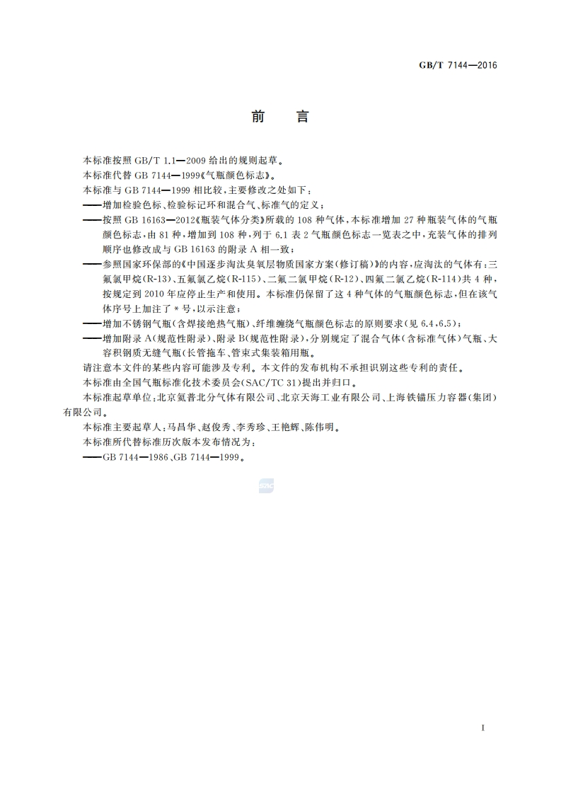 气瓶颜色标志Colouredcylindermarkforgases348072@abc3天前发布关注私信0.61MB17页037气瓶颜色标志Colouredcylindermarkforgases此内容为付费资源,请付费后查看¥19¥29黄金会员免费钻石会员免费立即购买您当前未登录!建议登陆后购买,可保存购买订单付费资源 第1页 / 共17页 第2页 / 共17页 第3页 / 共17页 第4页 / 共17页 第5页 / 共17页 试读已结束,还剩12页,您可下载完整版后进行离线阅读 THE END标准规范 文本预览 1CS23.020.30J74中华人民共和国国家标准GB/T7144一2016代替GB7144一1999网气瓶颜色标志Coloured cylinder mark for gases2016-02-24发布2016-09-01实施中华人民共和国国家质量监督检验检疫总局发布中国国家标准化管理委员会 查看更多 收起部分 喜欢就支持一下吧收藏